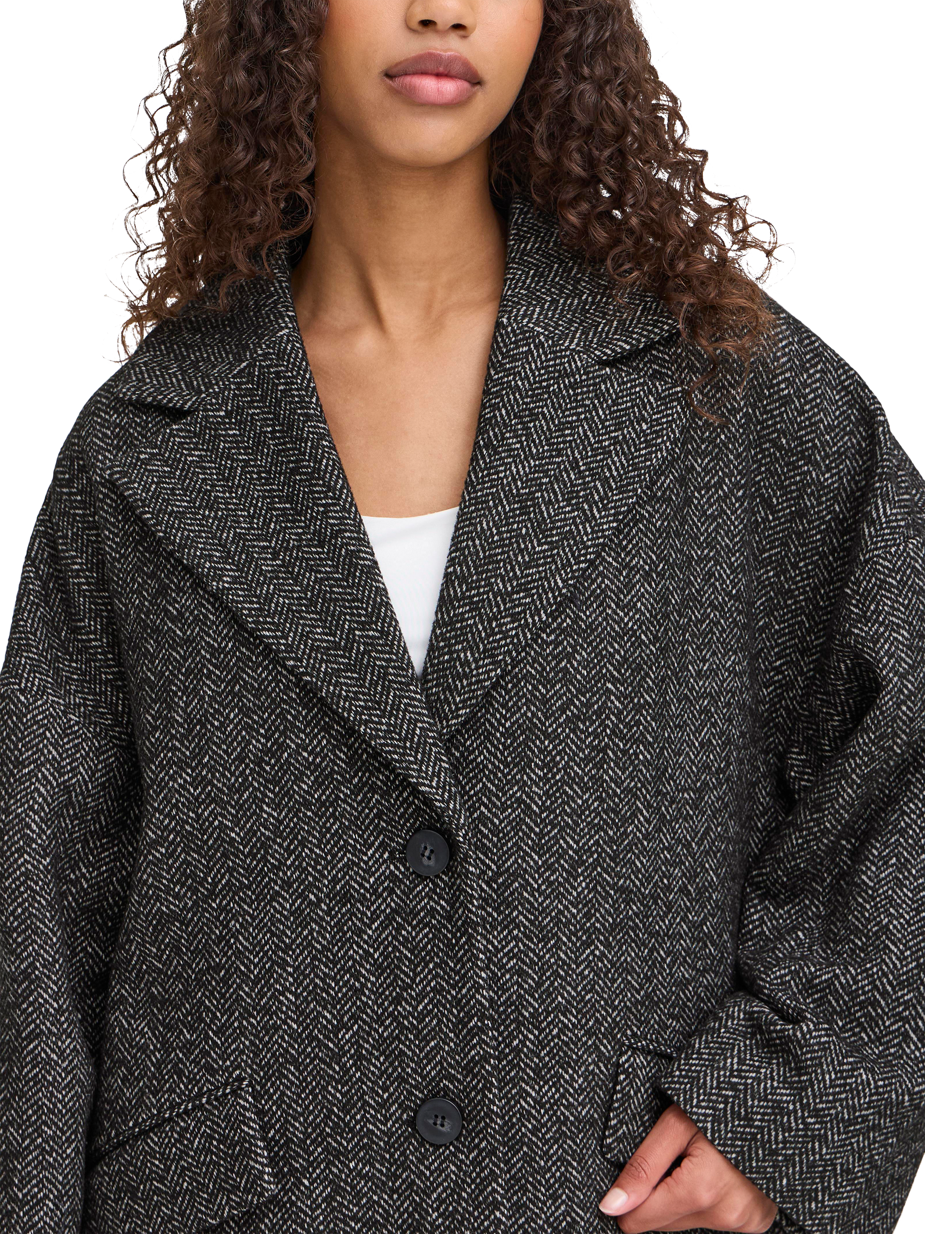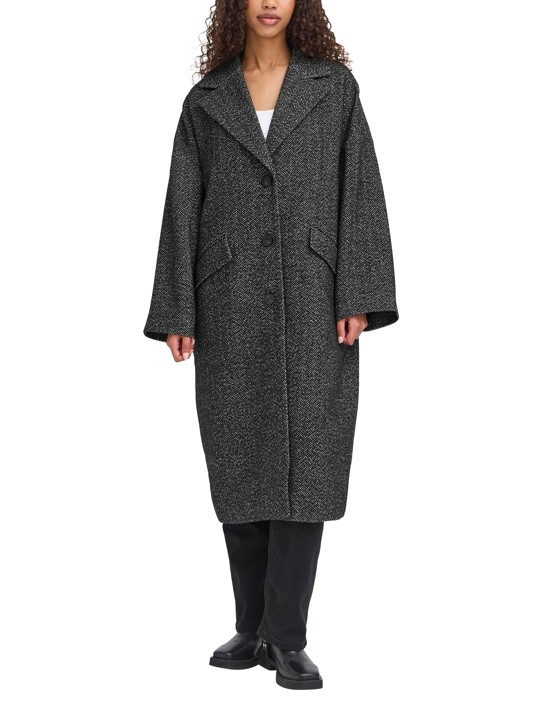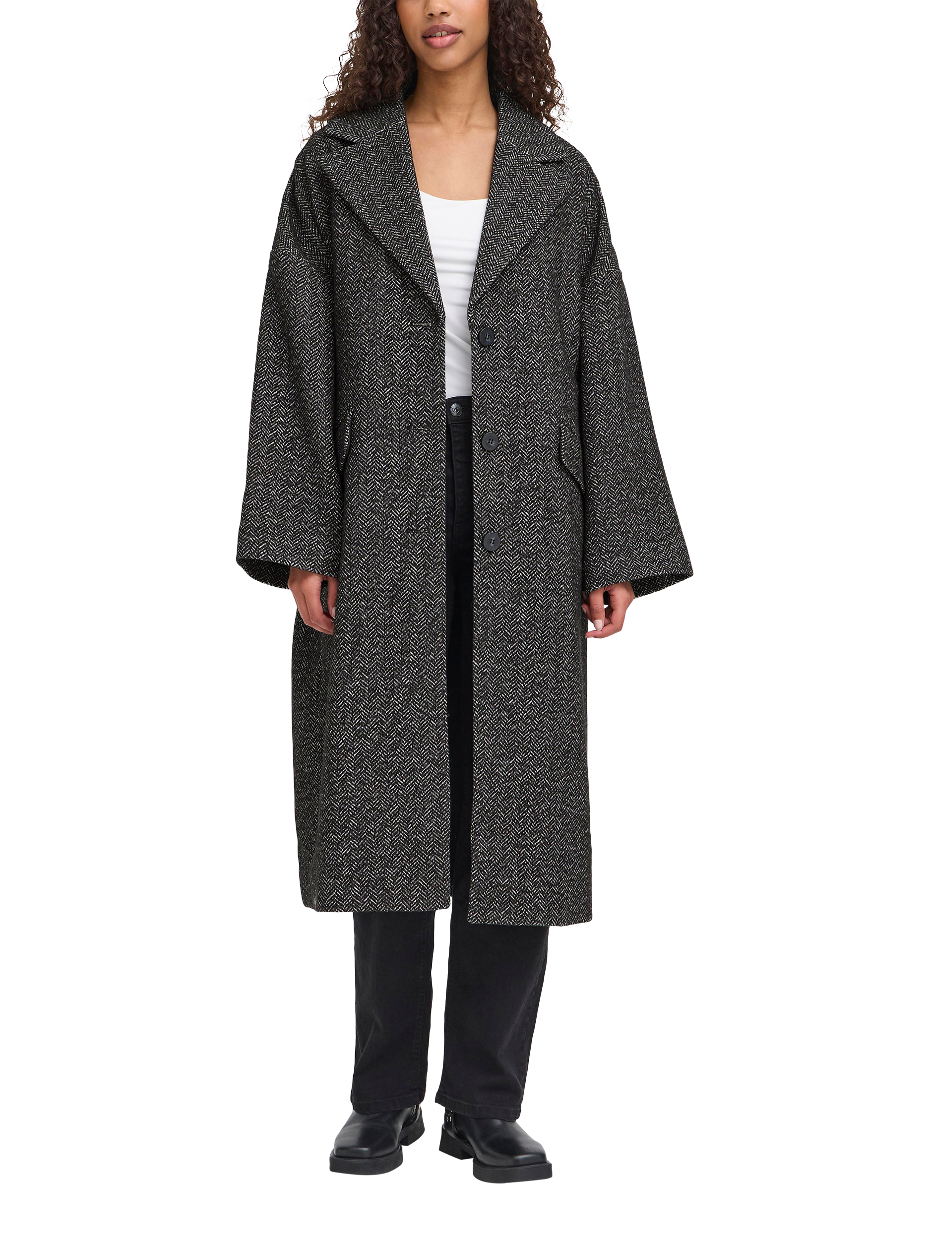 This herringbone overcoat from ICHI adds structure and flair to your everyday. Its wool blend gives you warmth and comfort while the longline design and button fastening provide effortless layering for work or weekends.