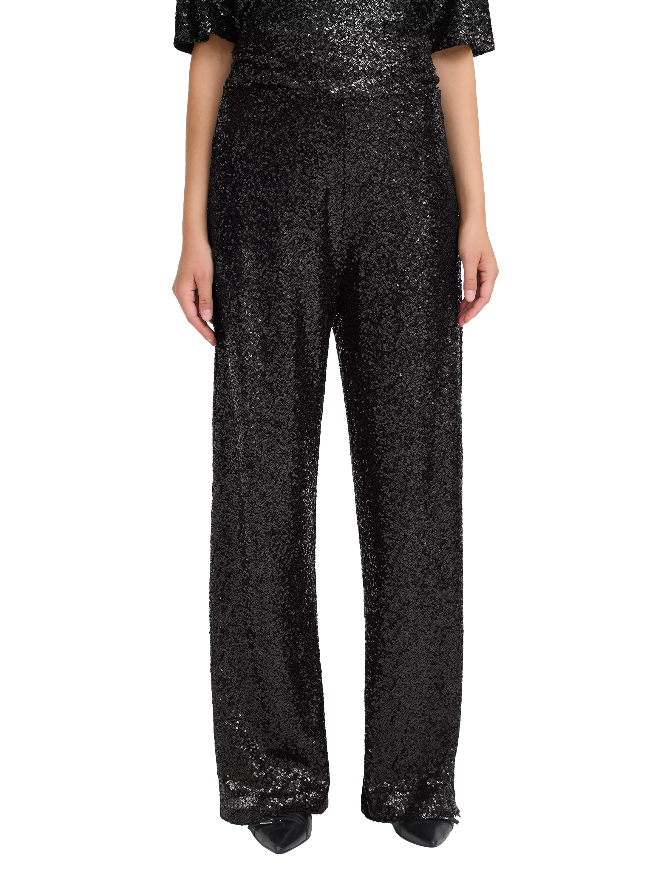 Where low-key volume meets sharp tailoring - a pair of sequin embellished wide-leg trousers from ICHI. They are designed to sit mid rise with a zip fastening and hems that fall to a regular length.