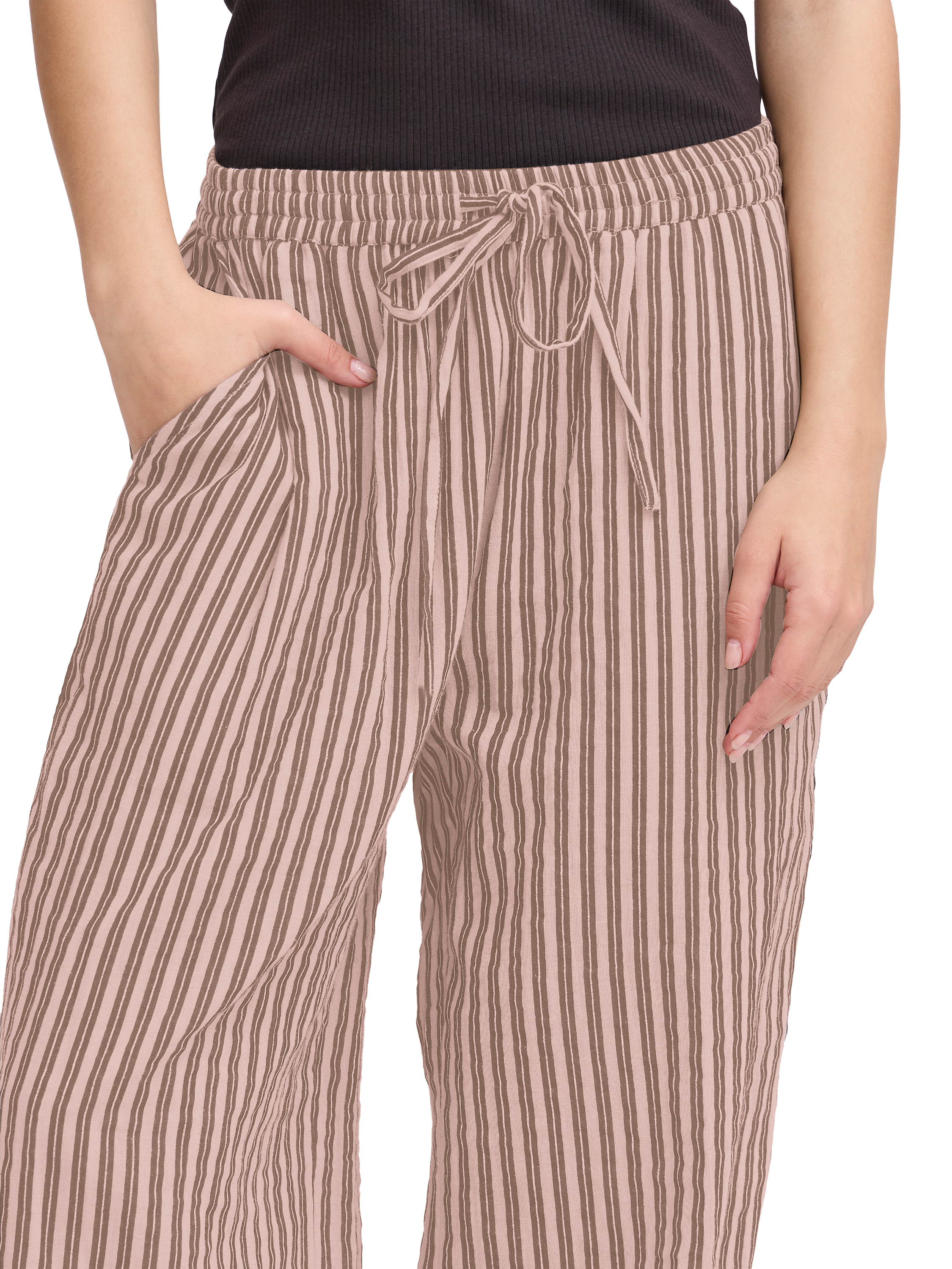 A statement trend that there's no escaping from, this pair of trousers from ICHI sit naturally on the hips and have a wide-legged fit. Putting quality first in pure cotton, they are printed with no-nonsense stripes.