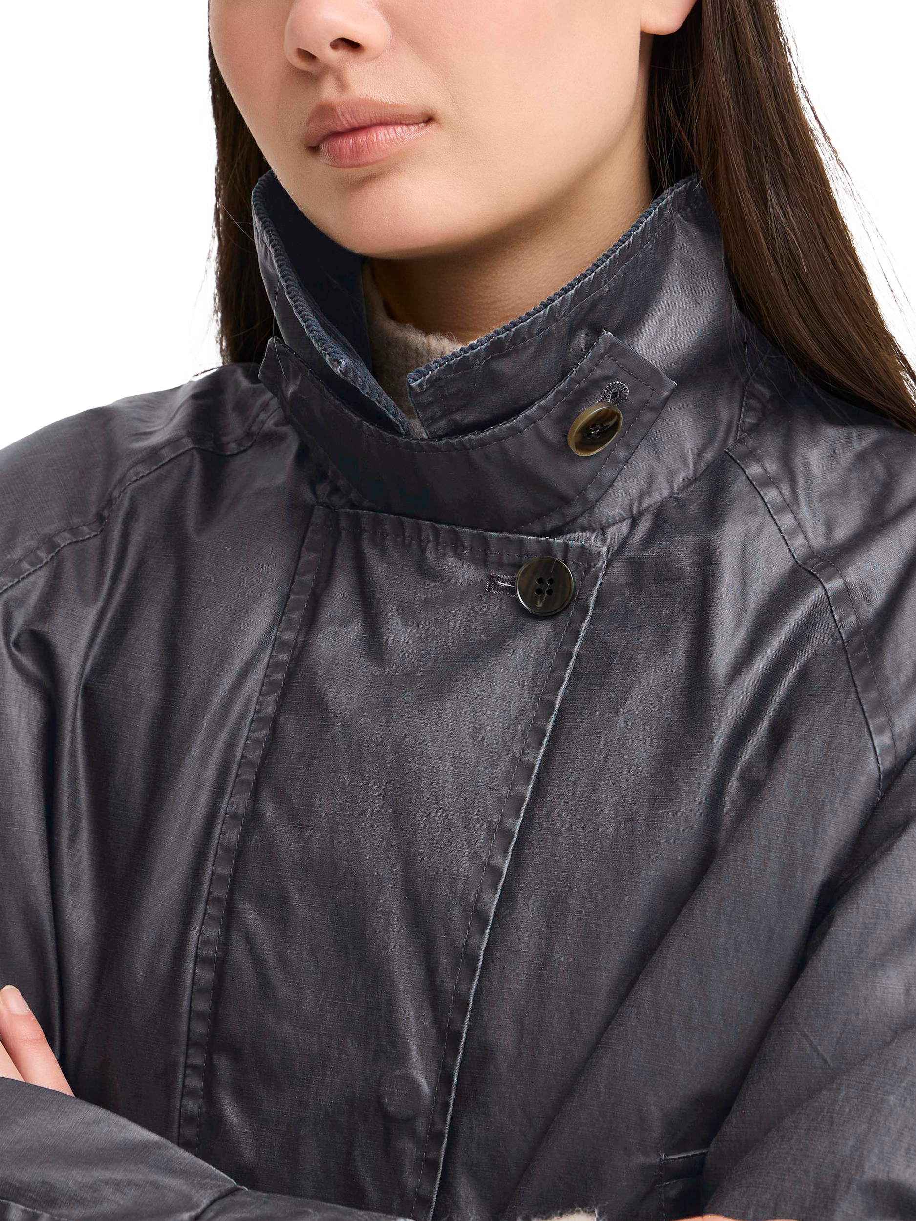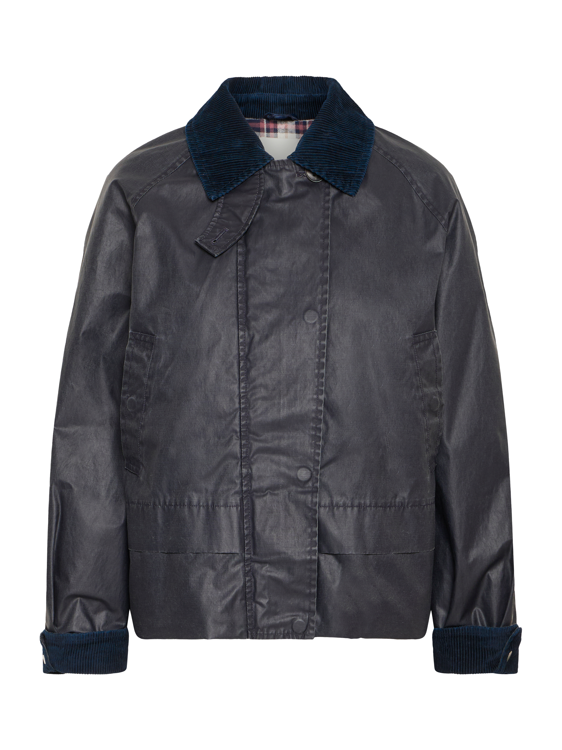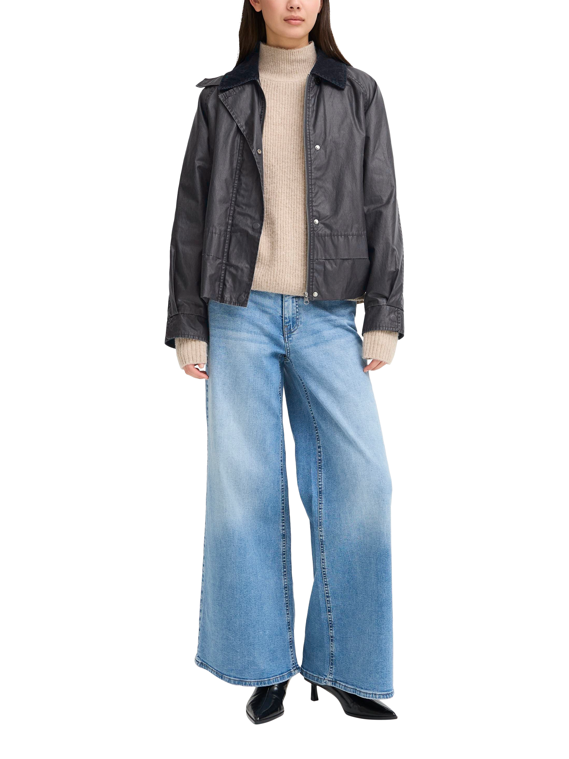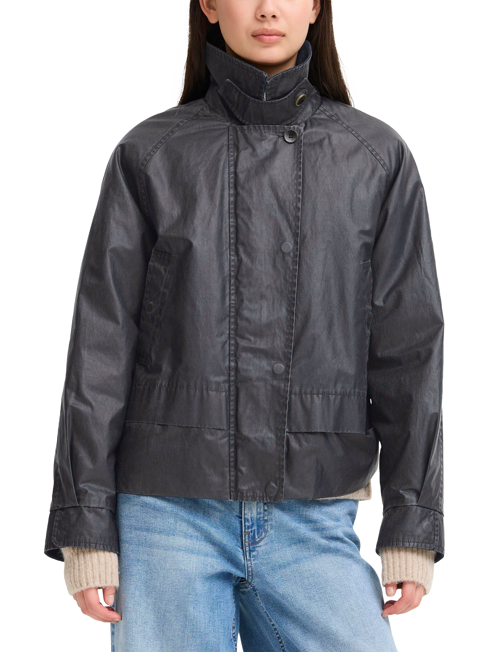 Framed with a collar neckline, this waxed jacket from ICHI it is made from a comfortable cotton blend and sits at the hip for versatile coverage.
