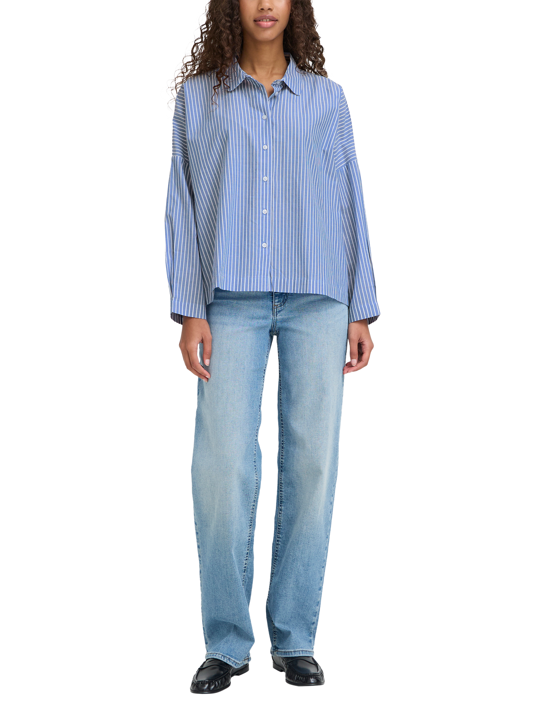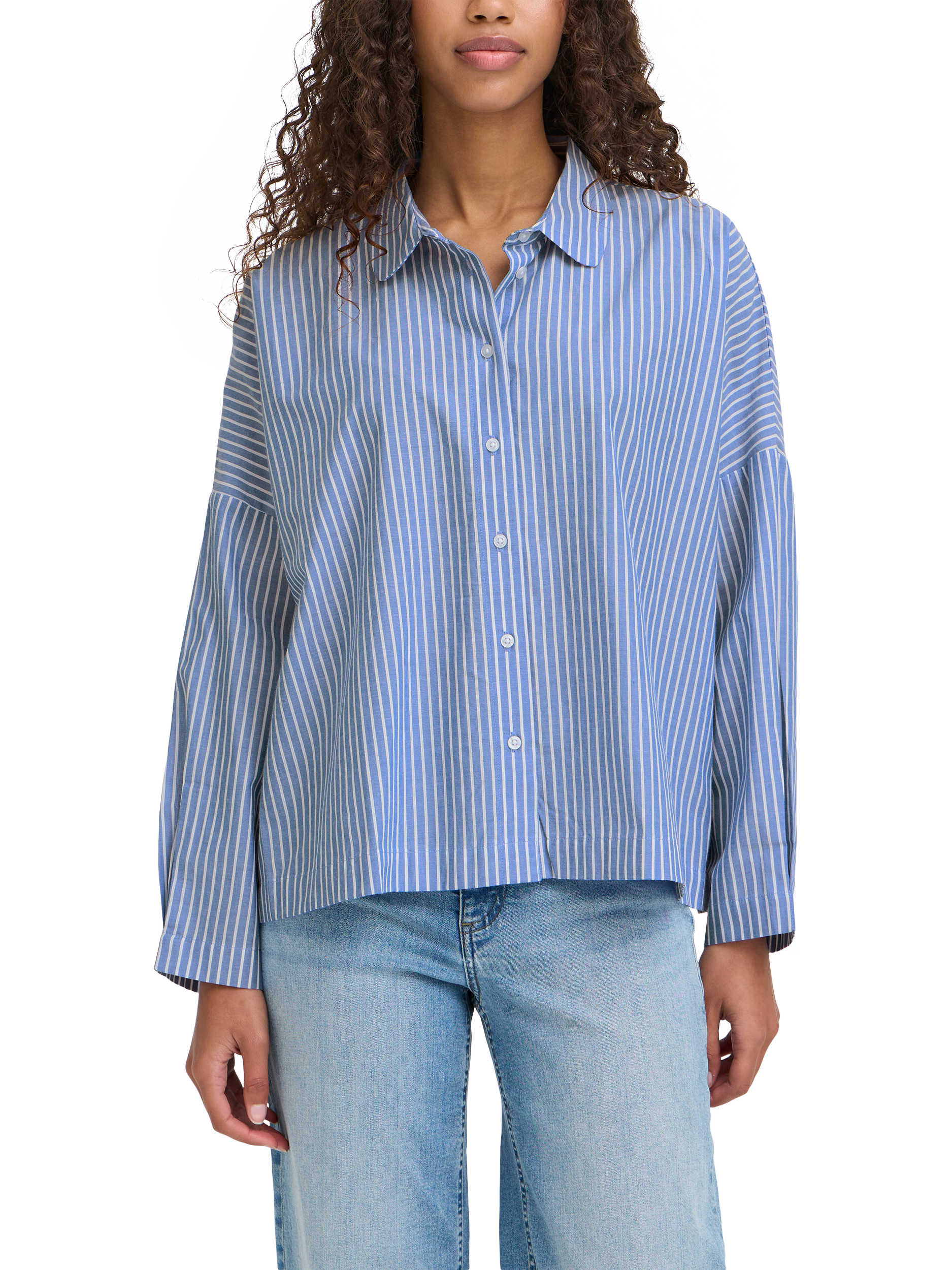 ICHIGiley Stripe Boxy Shirt, Birch/Blue