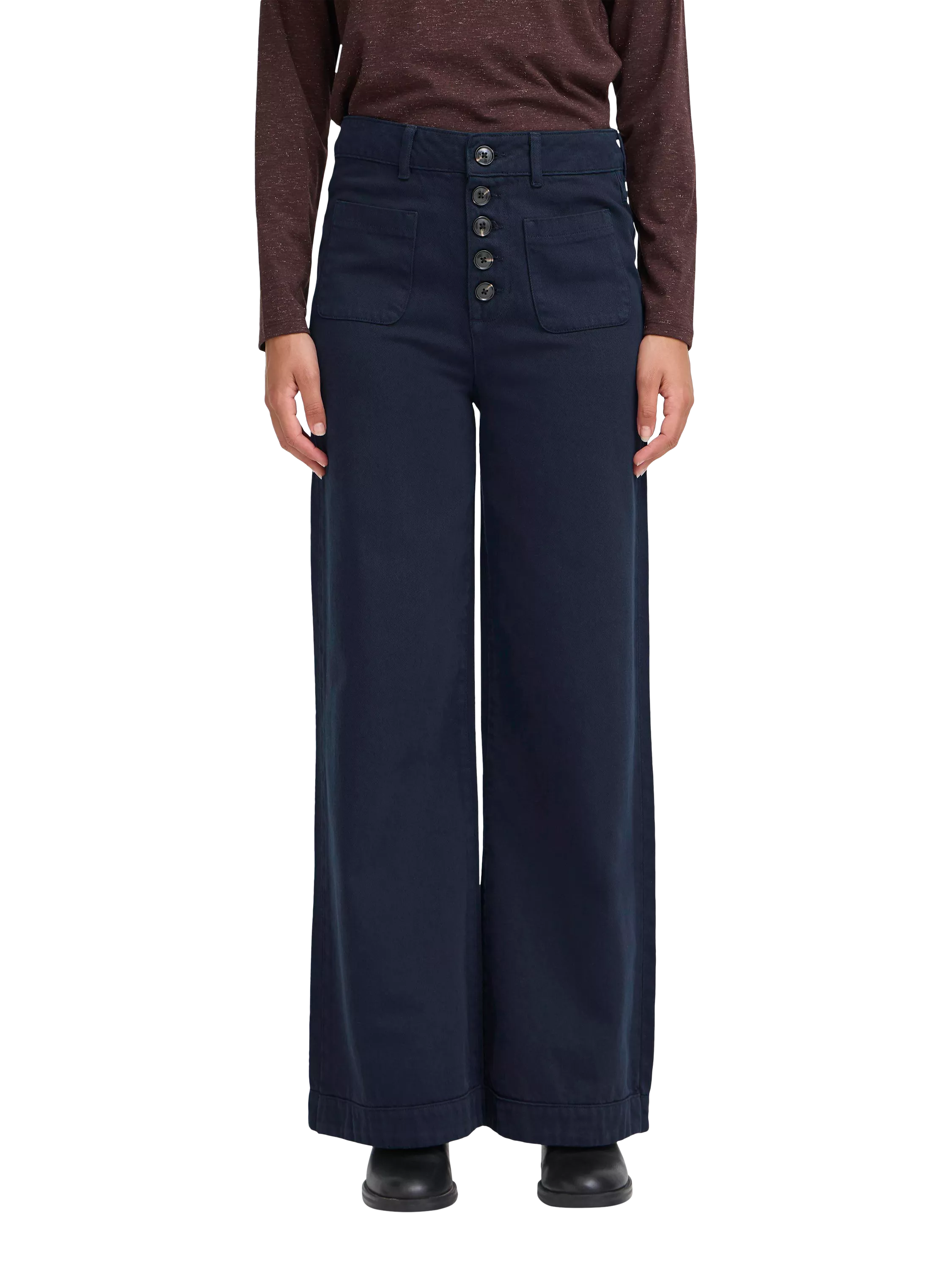 ICHIHezano Wide Leg Jeans, Dark Navy