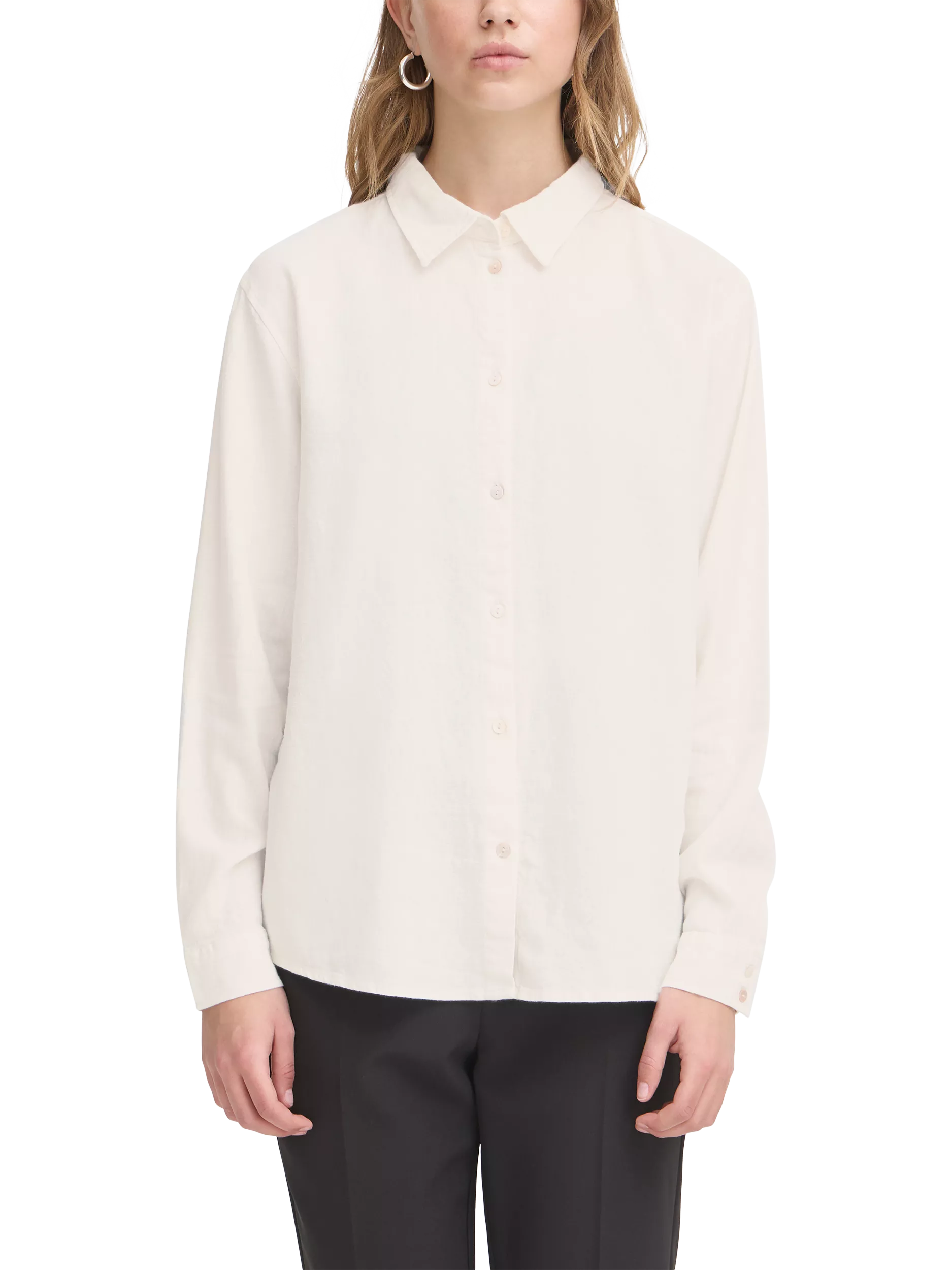 Elevating your everyday, this shirt from ICHI is plain for easy mixing and matching. With a neat collared neck and long sleeves, the linen blend fabric gives it a breathable, airy quality and is an everyday wardrobe essential.