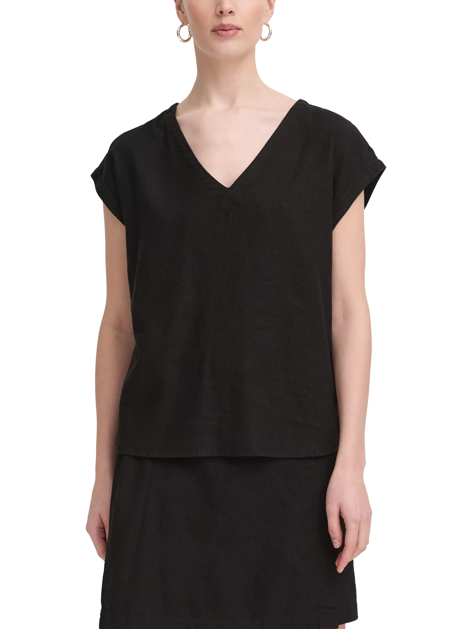 Bringing a neat addition to your wardrobe, this blouse from ICHI allows for endless styling opportunities. Classic in cut with a v-neckline and short sleeves, it has a high linen content in its mix, making it lightweight and airy and is an everyday wardrobe essential.