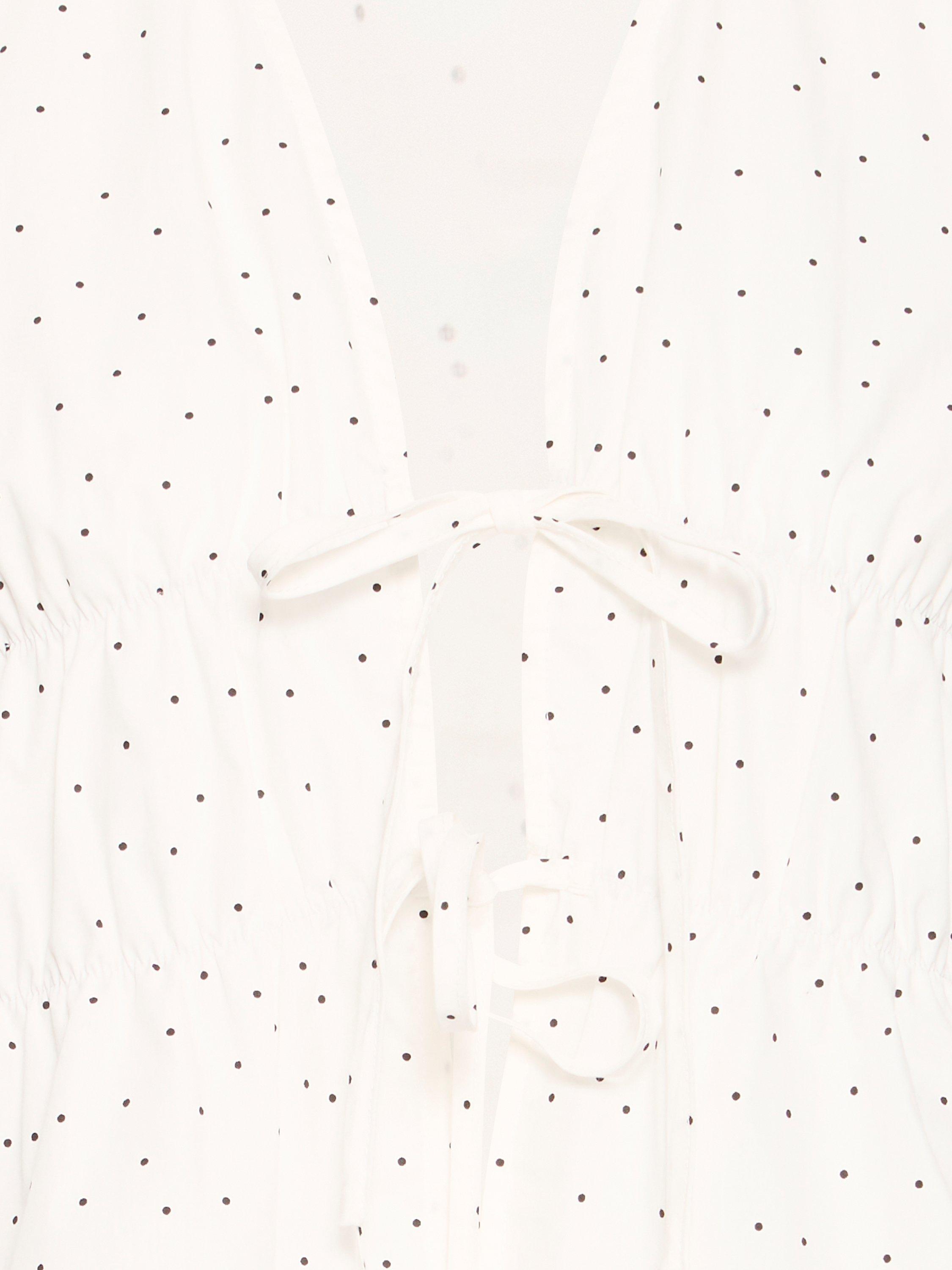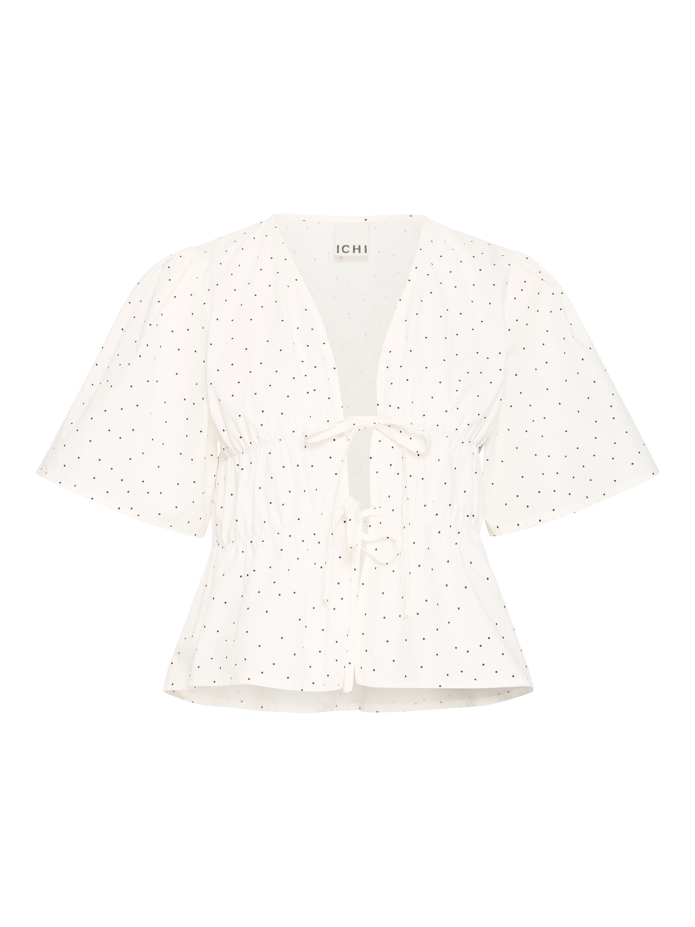 An effortless choice, this tie front blouse from ICHI has a classic polka dot print. With a flattering v-neckline and short sleeves, it's made from cotton for comfortable wear.