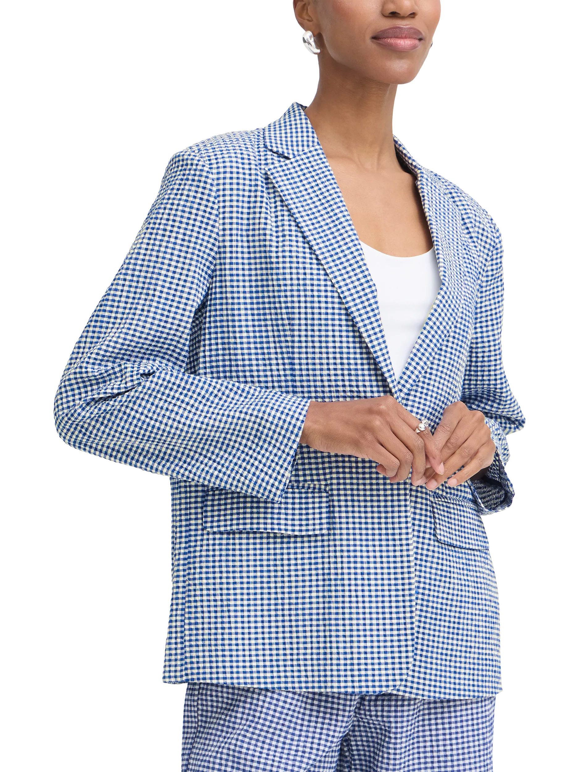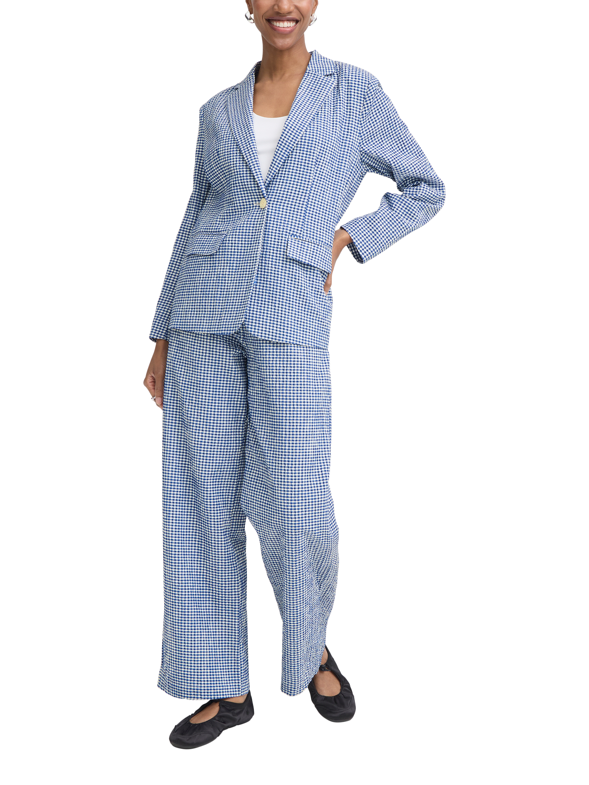 This single-breasted gingham blazer adds sharp definition to your daytime look. Finished in a comfortable cotton blend with a button fastening.