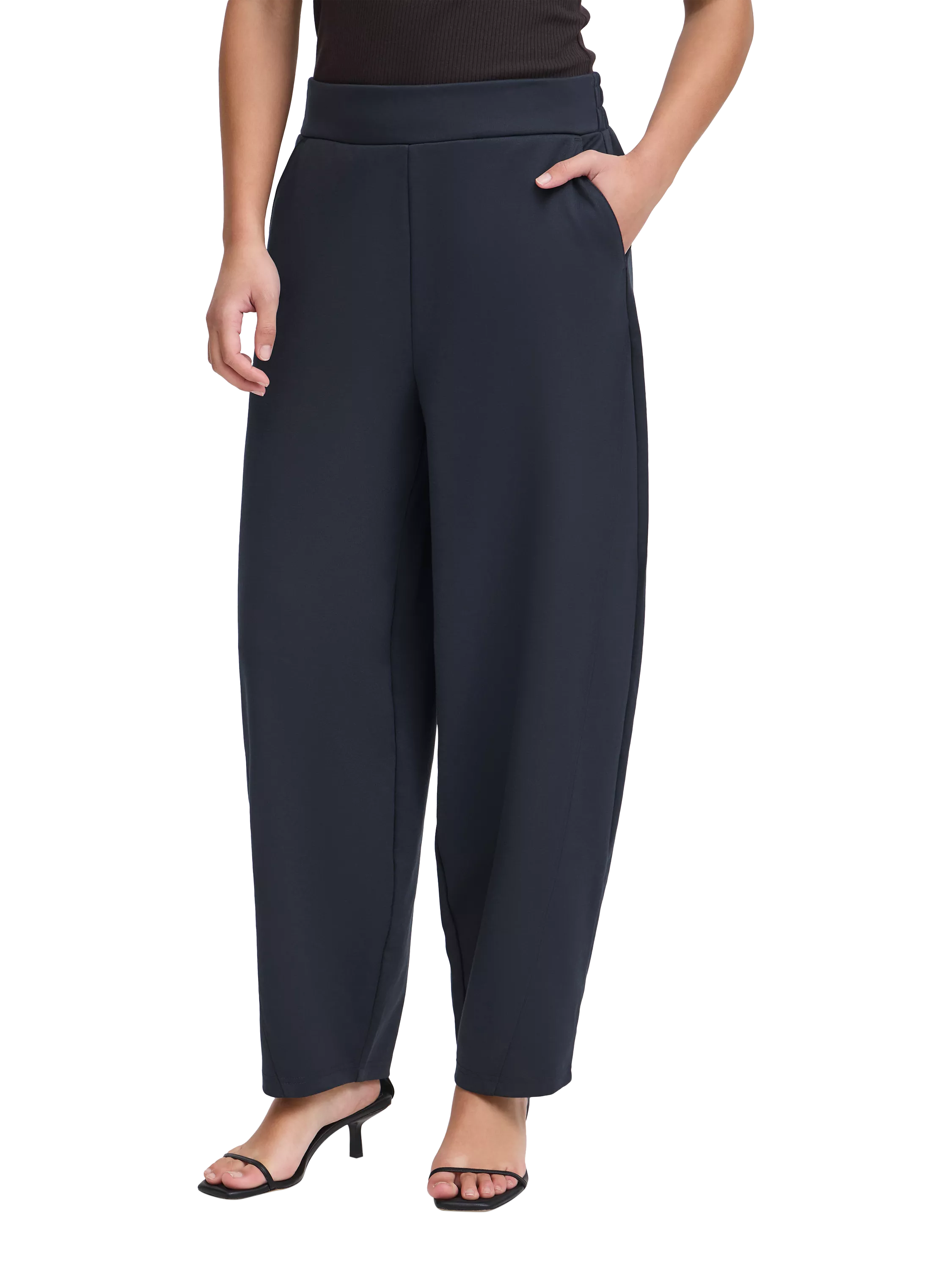 Barrel-leg trousers from ICHI. They feature a mid rise with an elasticated waist and a regular length.