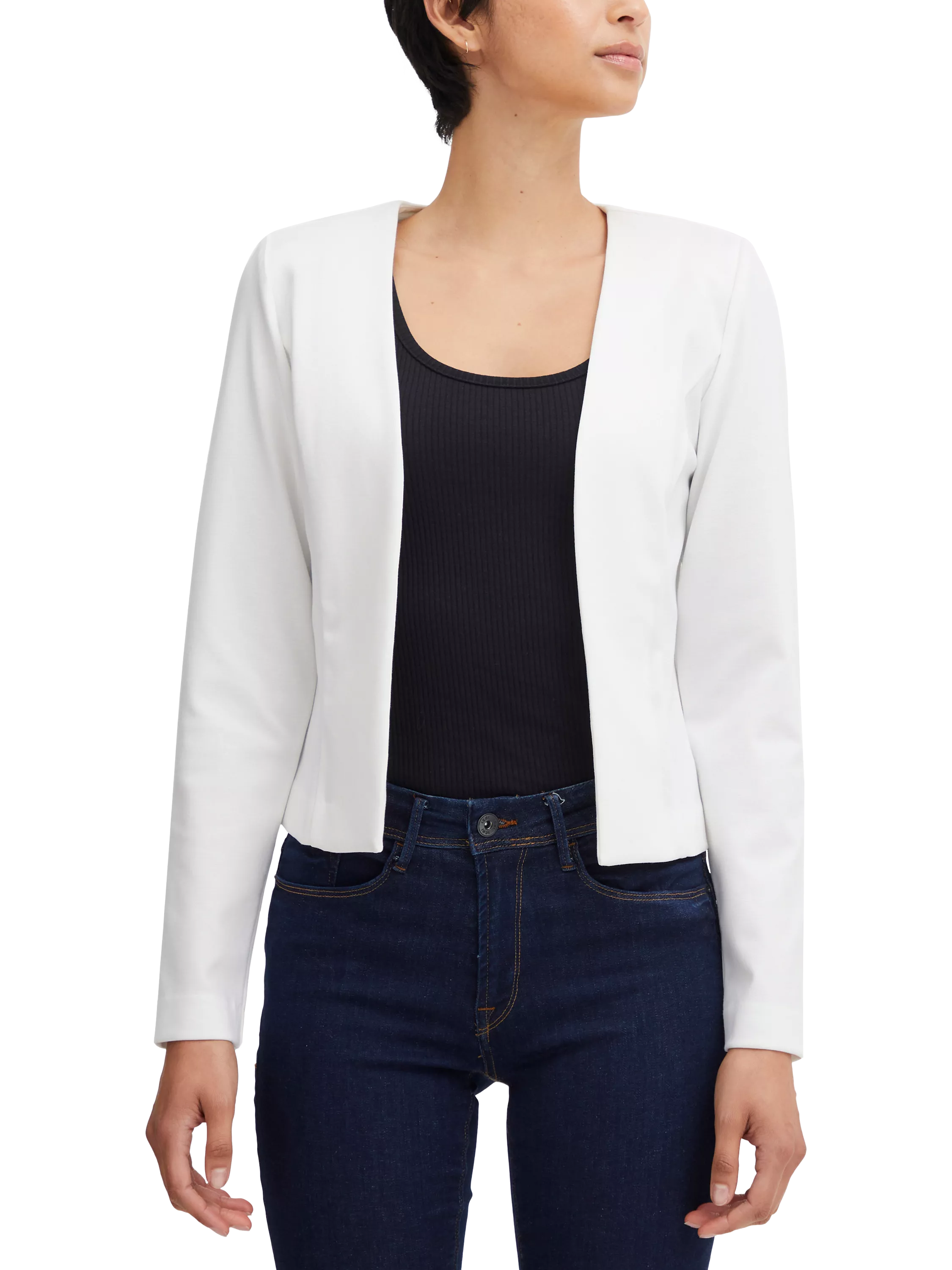 A flattering piece that layers elegantly over eveningwear attire, this cropped jacket by ICHI highlights the waist with its cropped hem.