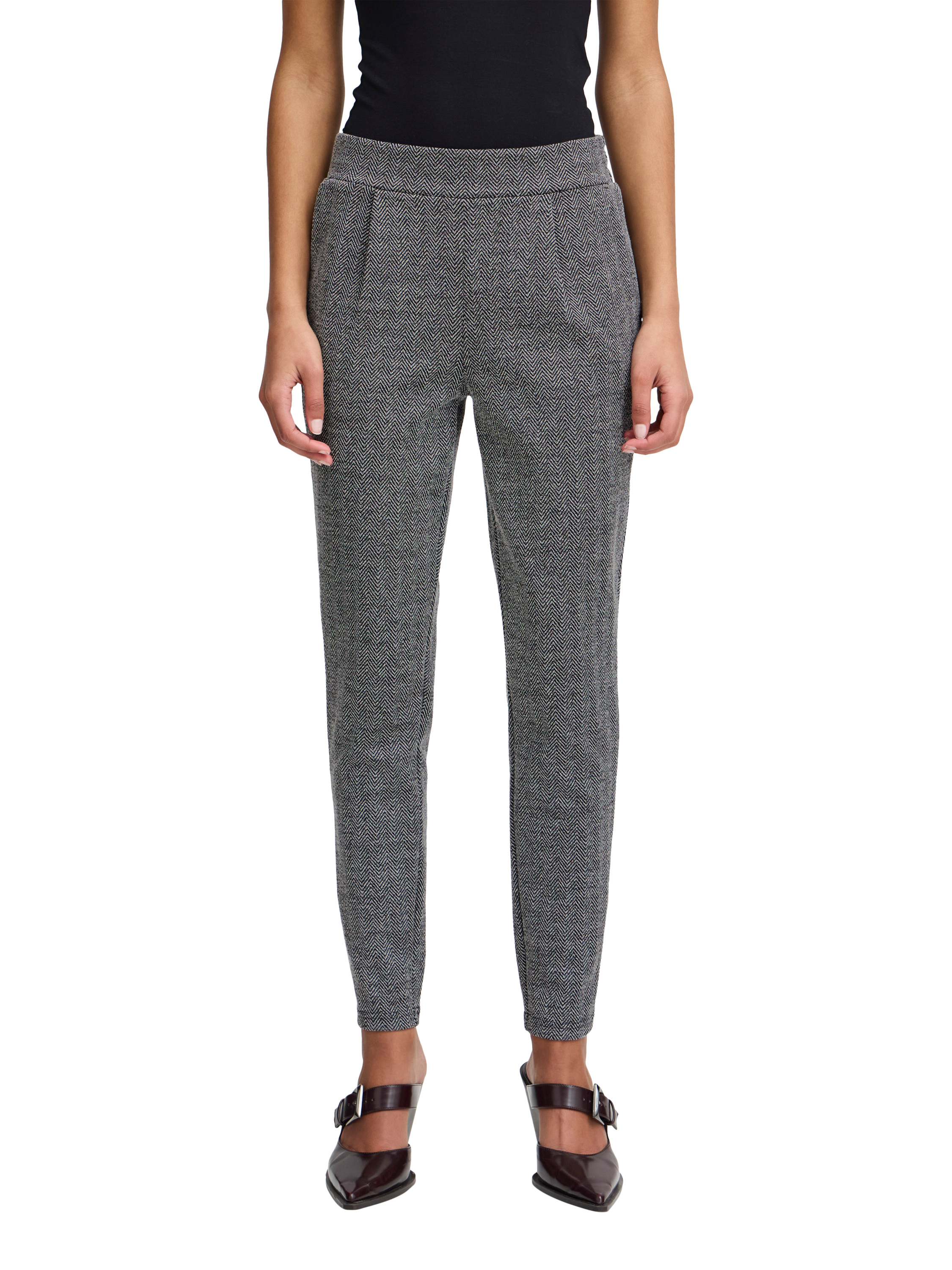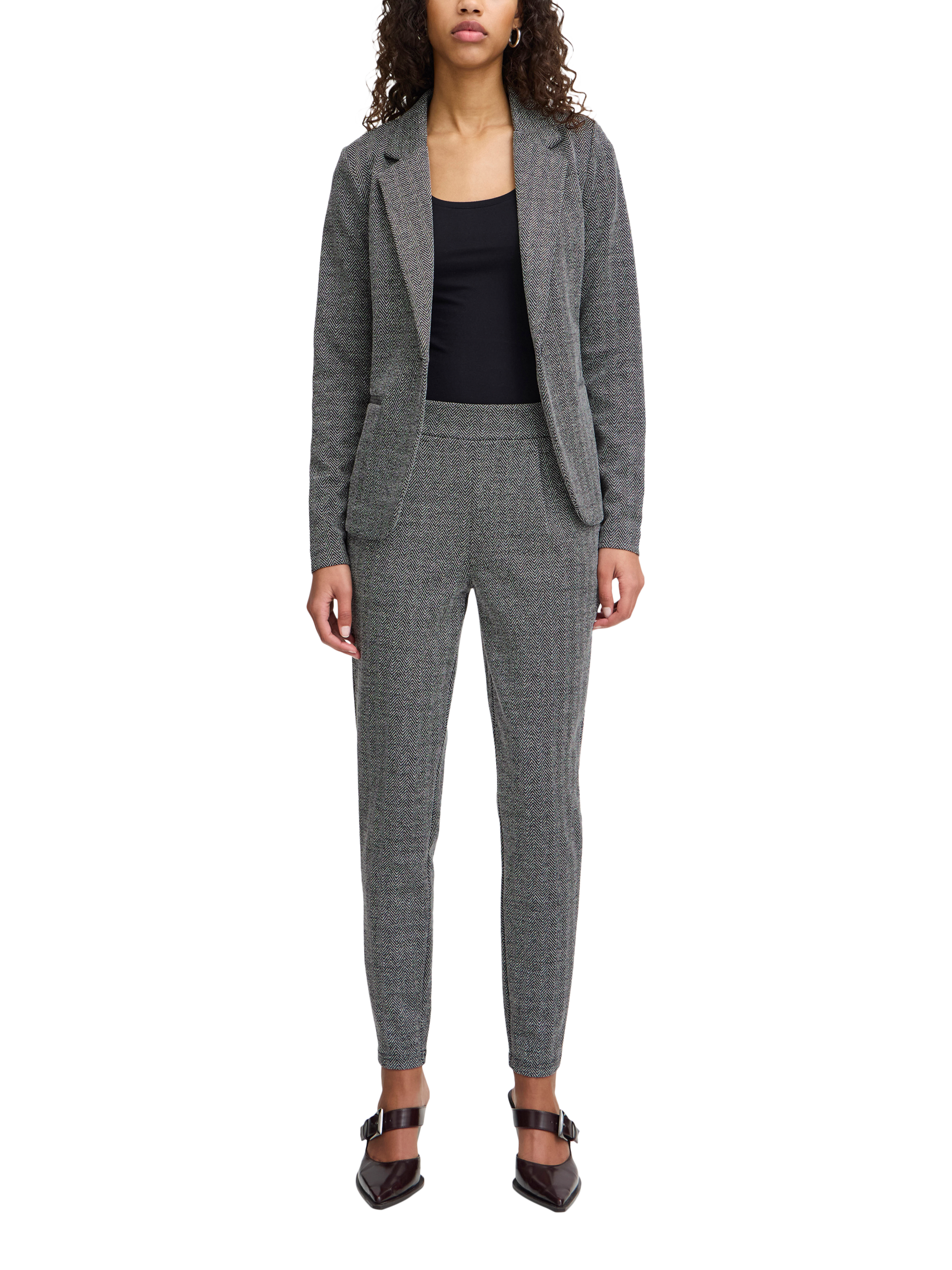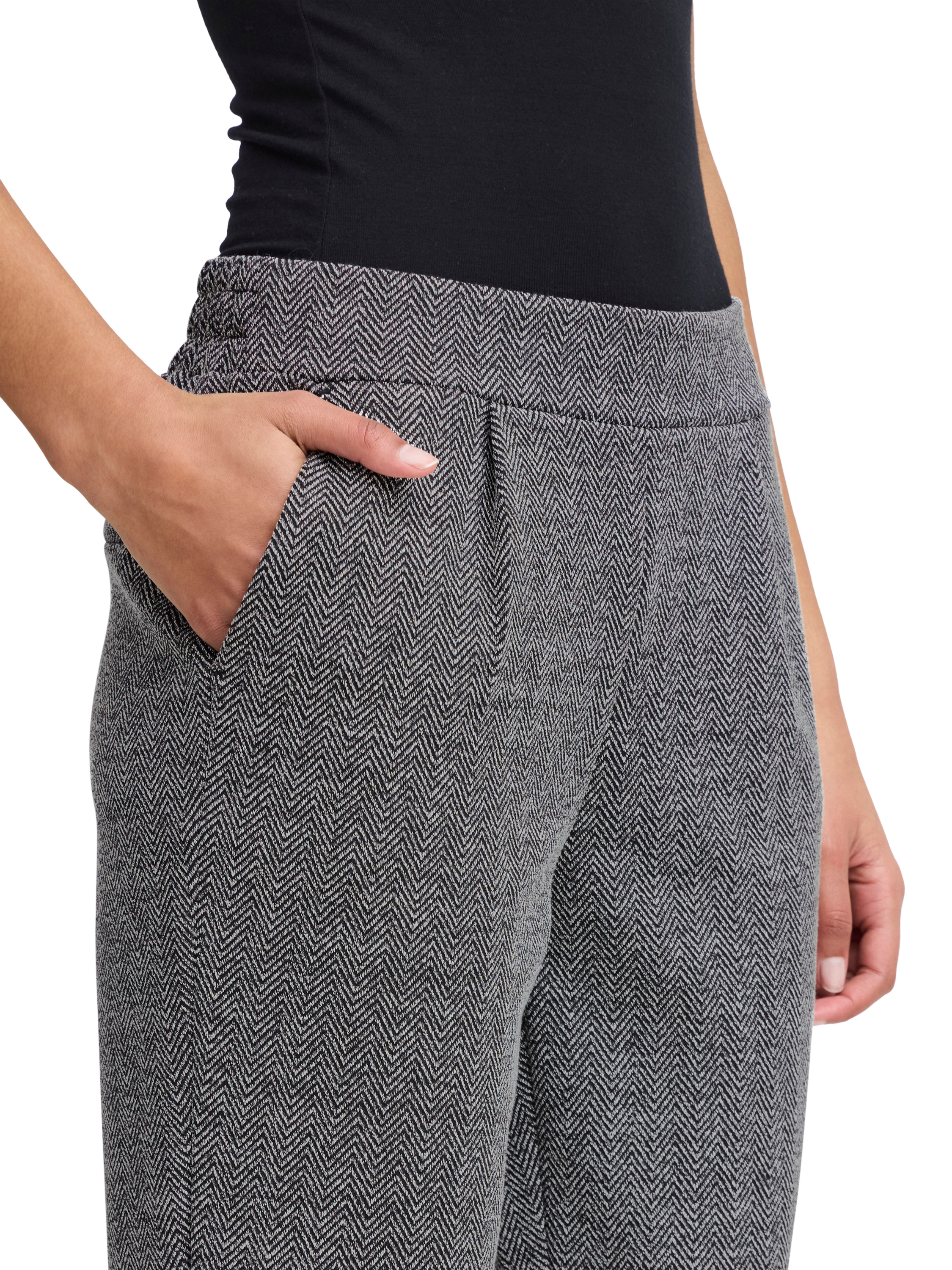 ICHIKate Herringbone Jacquard Trousers, Black/White