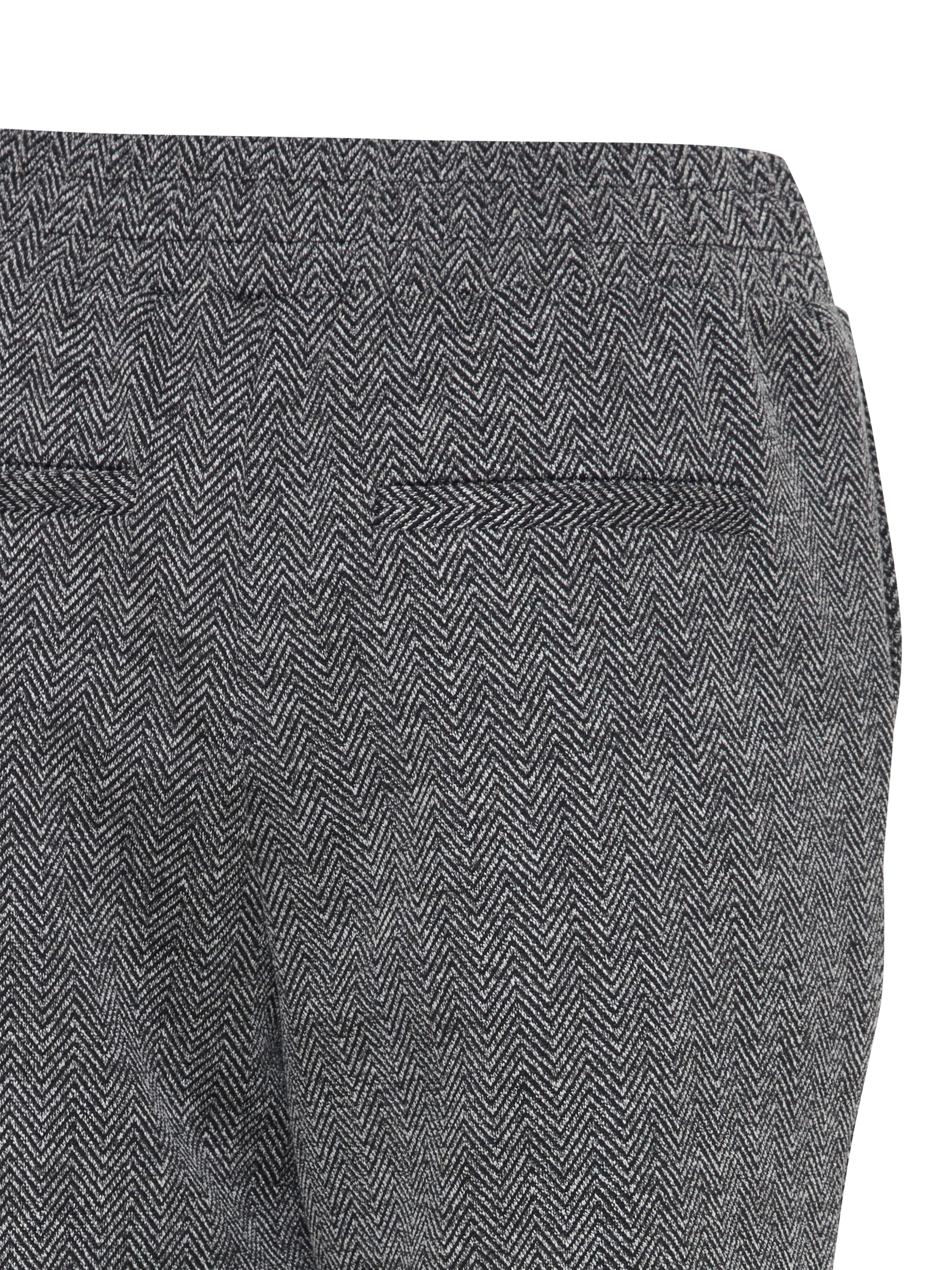 Withstanding frequent wear in a robust herringbone jacquard patterned fabric, they are cropped at the ankle.