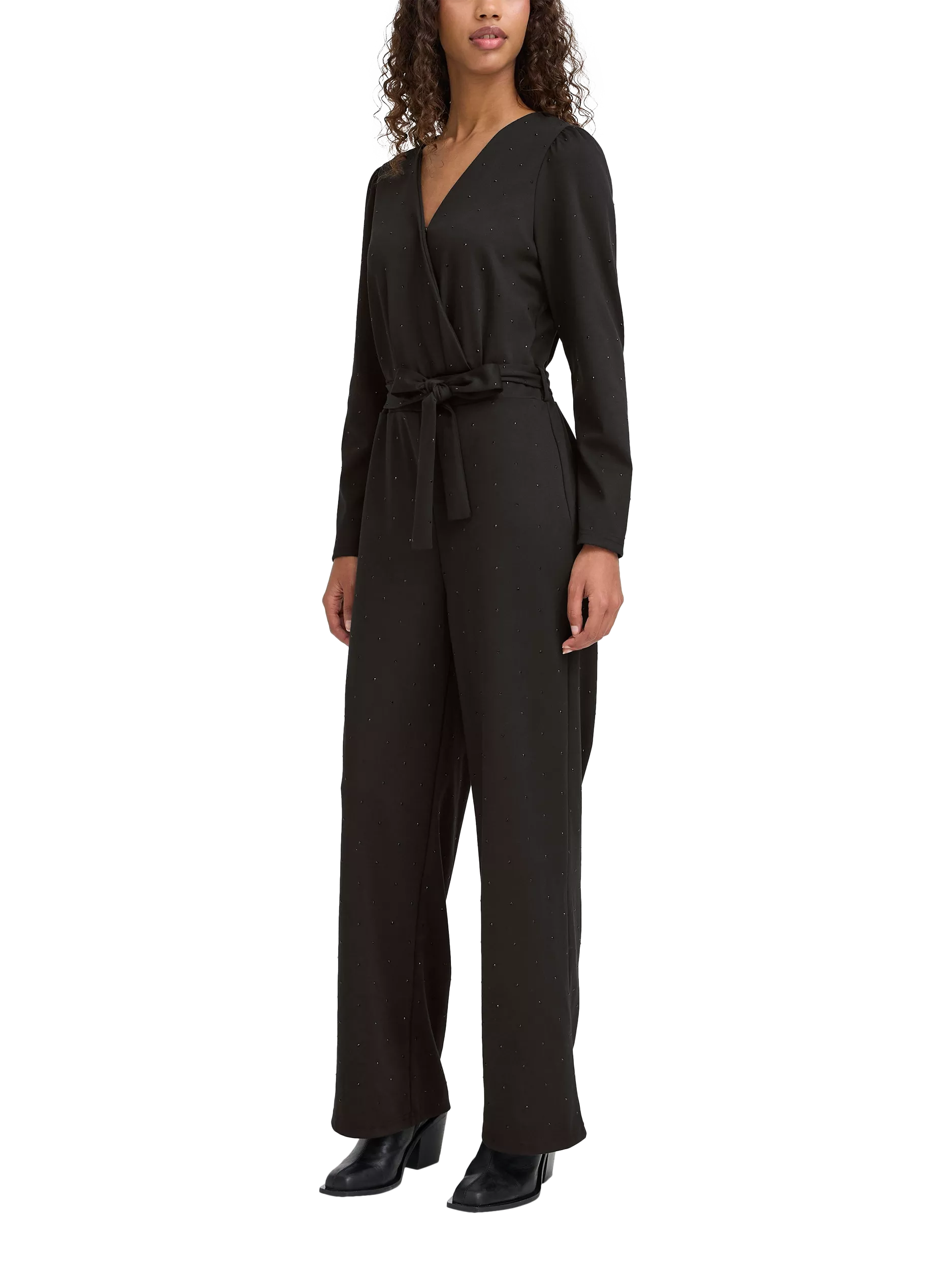 This ICHI jumpsuit brings smart design for your next evening out, featuring a collared neck and rhinestone embellishments. With its comfortable fit and practical zip fastening, it makes every event feel more memorable.