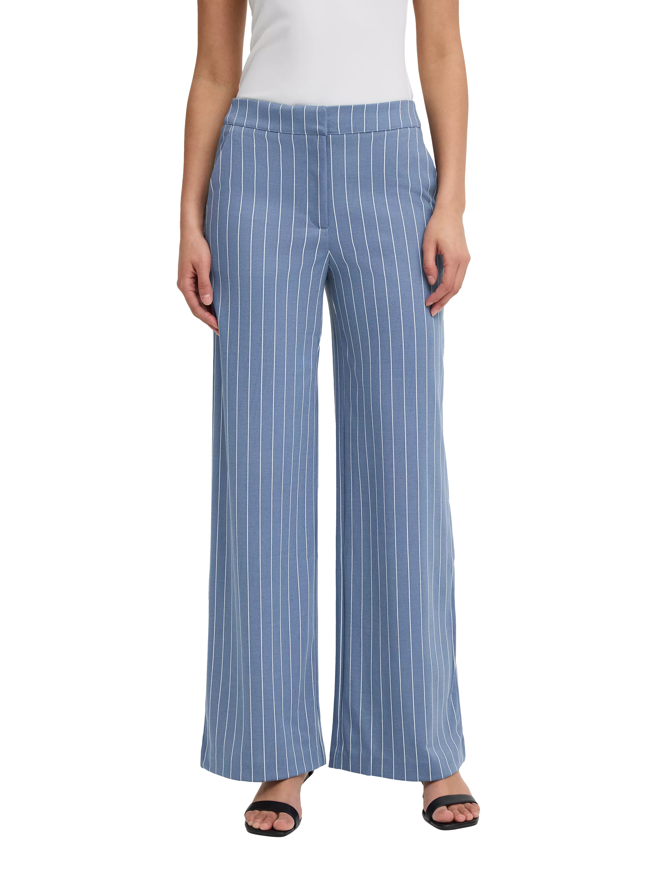 Soft, comfortable and yet robust, this pair of striped trousers by ICHI sit naturally on the hips and are cut with an ample wide leg.