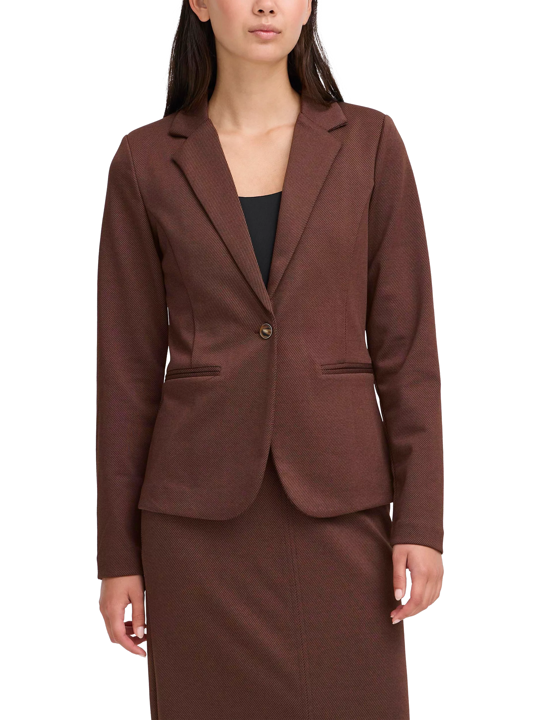A smart outerwear piece that will pull any look together, this blazer from ICHI sits at the hip for versatile coverage.