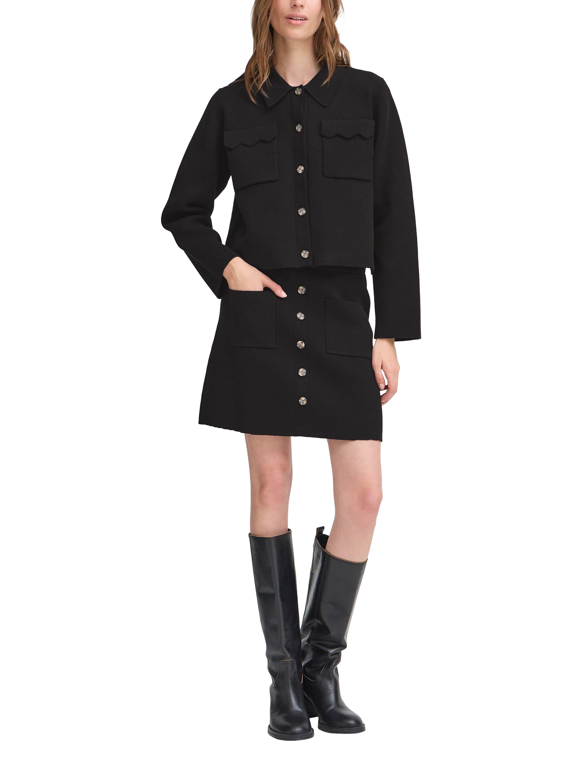 A mini skirt by ICHI. Soft and floaty, it's formed in a cotton blend with a mid rise. Equipped with a button fastening.