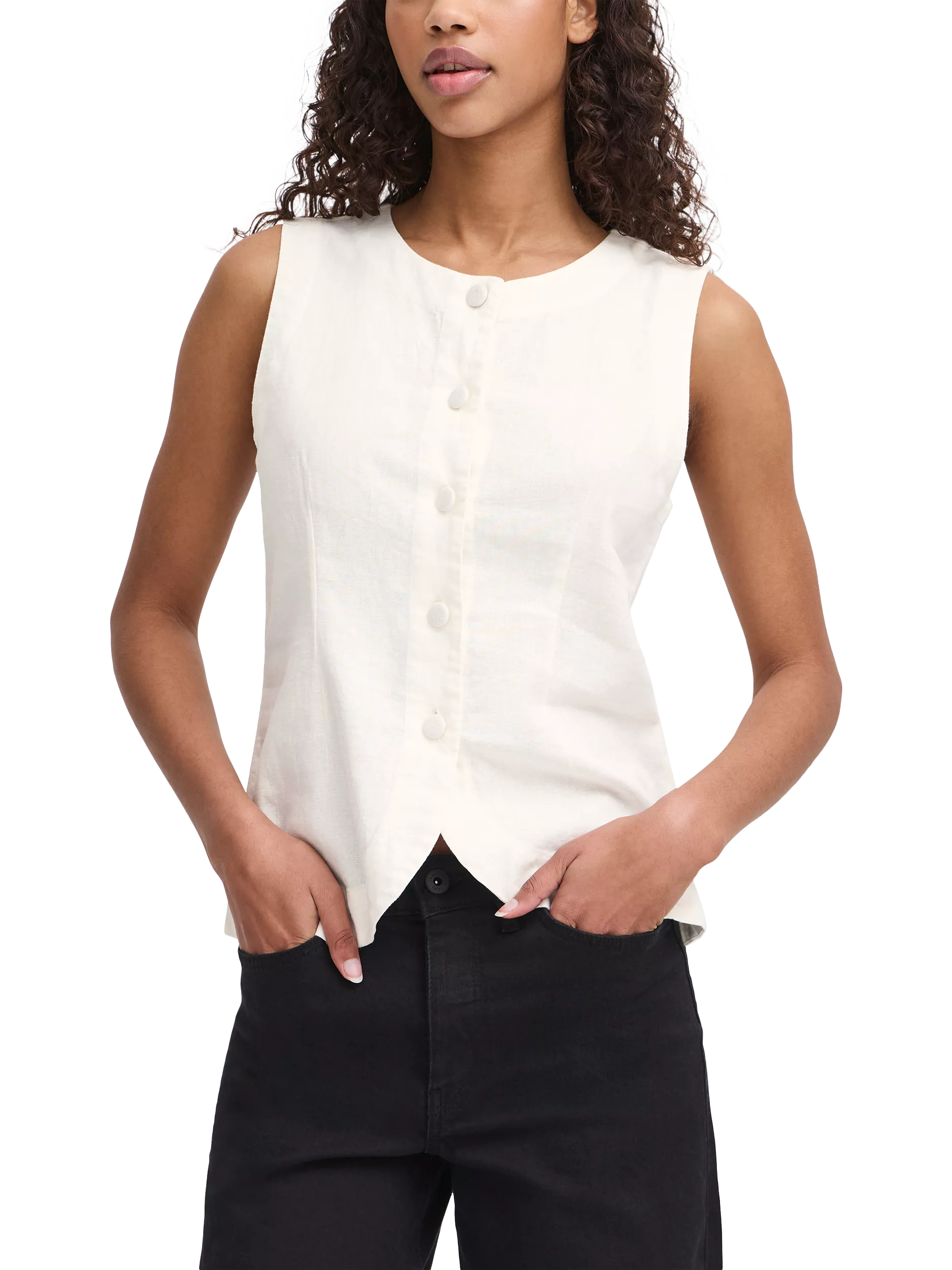 Made from a rich linen blend that's perfect for donning on the daily, this top from ICHI is made with a round neckline and a sleeveless silhouette.