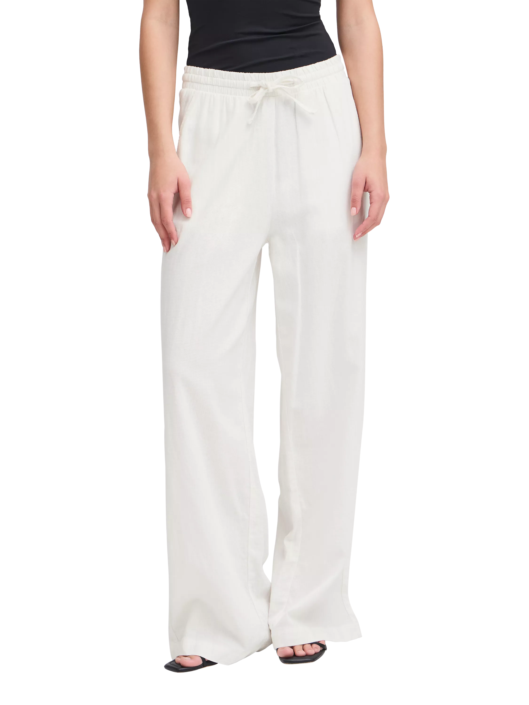 Perfectly chic for casual outings or dressy occasions, this pair of wide-leg trousers by ICHI sit naturally on the hips and are stitched together from a linen blend for enhanced breathability.