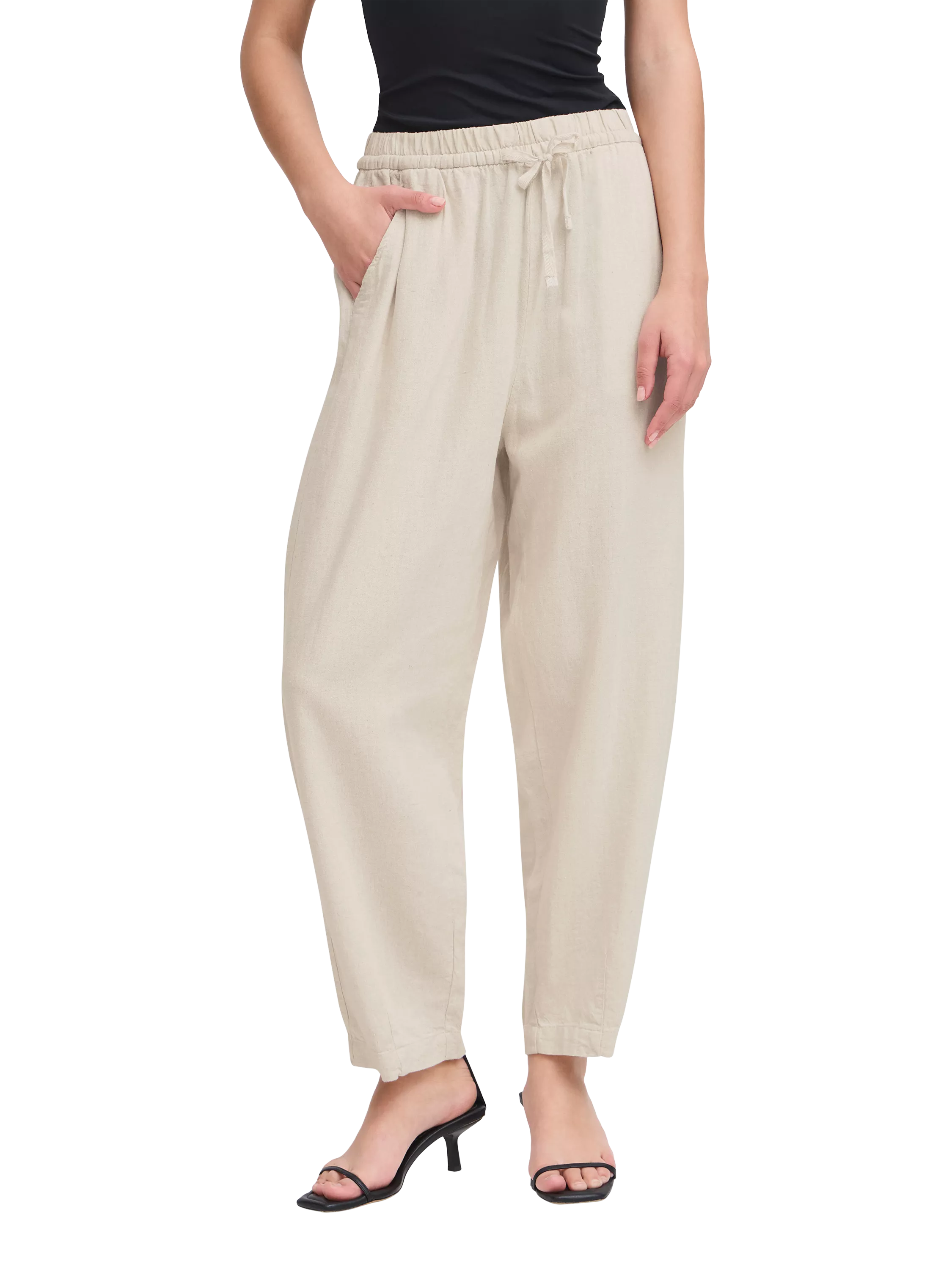 With a comfy elasticated drawstring waist, this pair of tapered joggers by ICHI sit naturally on the hips and are relaxed in shape. Breezy in a linen blend, they play nicely on both smart and casual affairs.