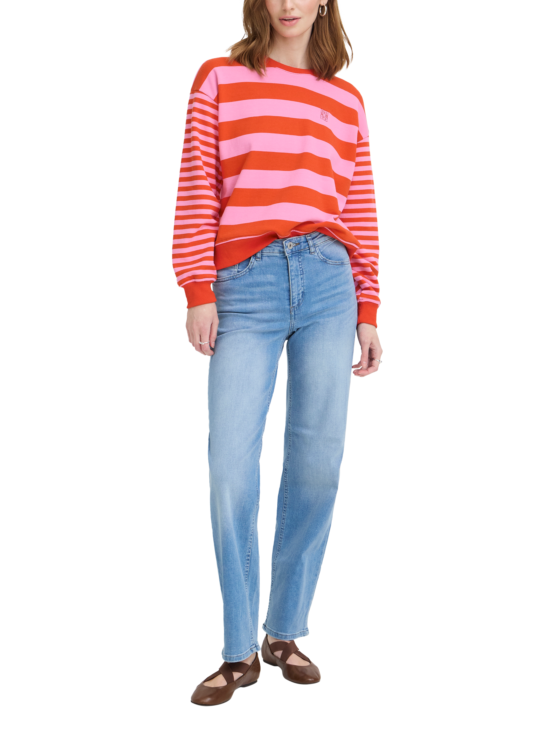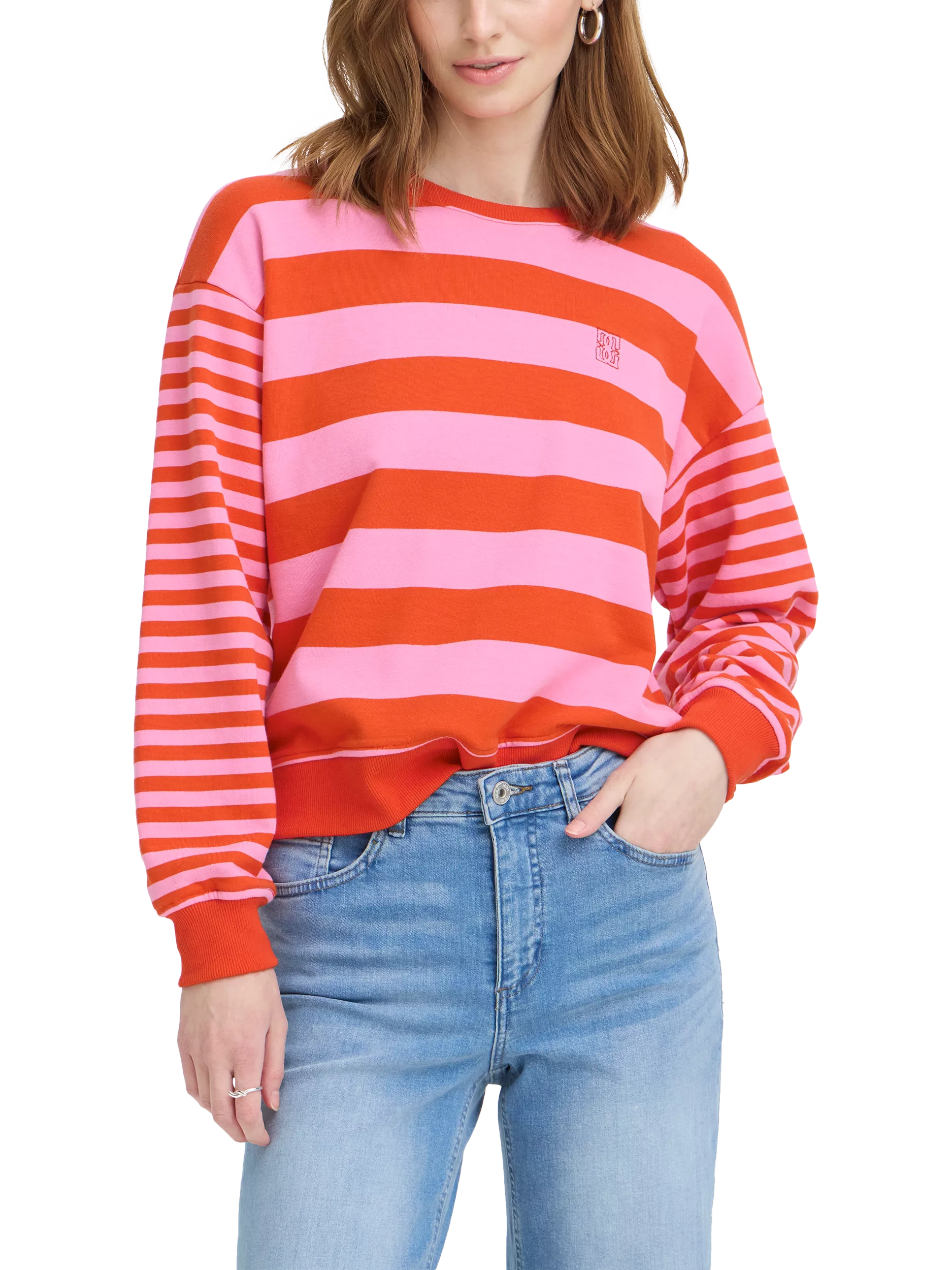 A striped sweatshirt by ICHI. The crew neck and long sleeves keep you comfortable, with a mid-weight that's easy to layer up in.