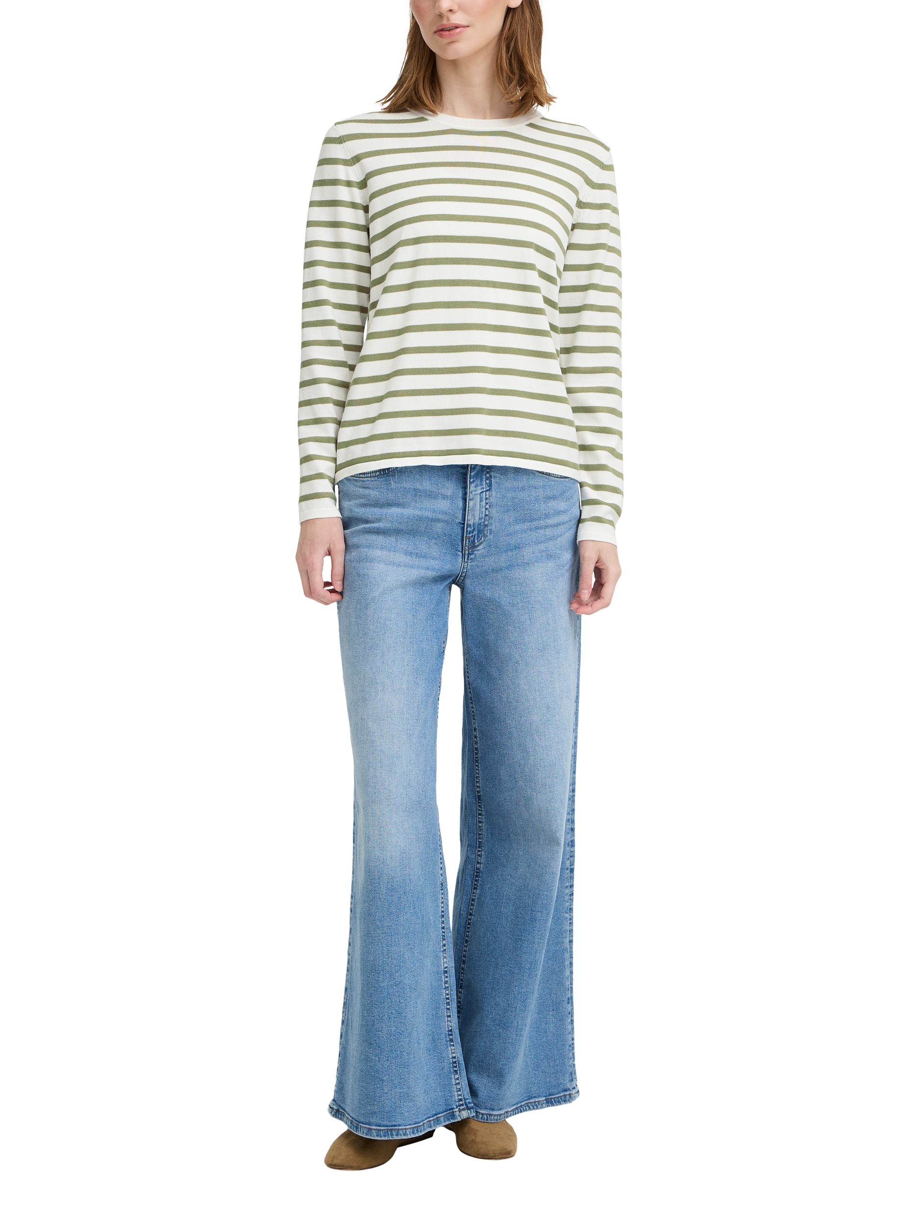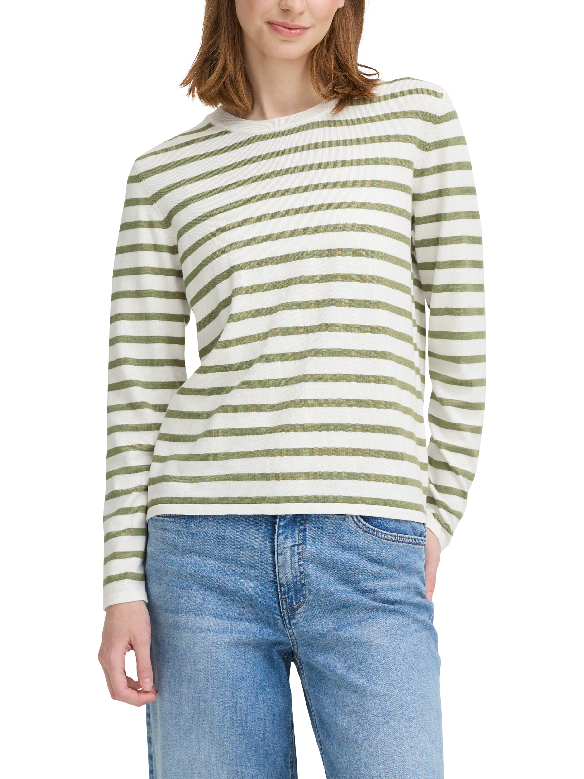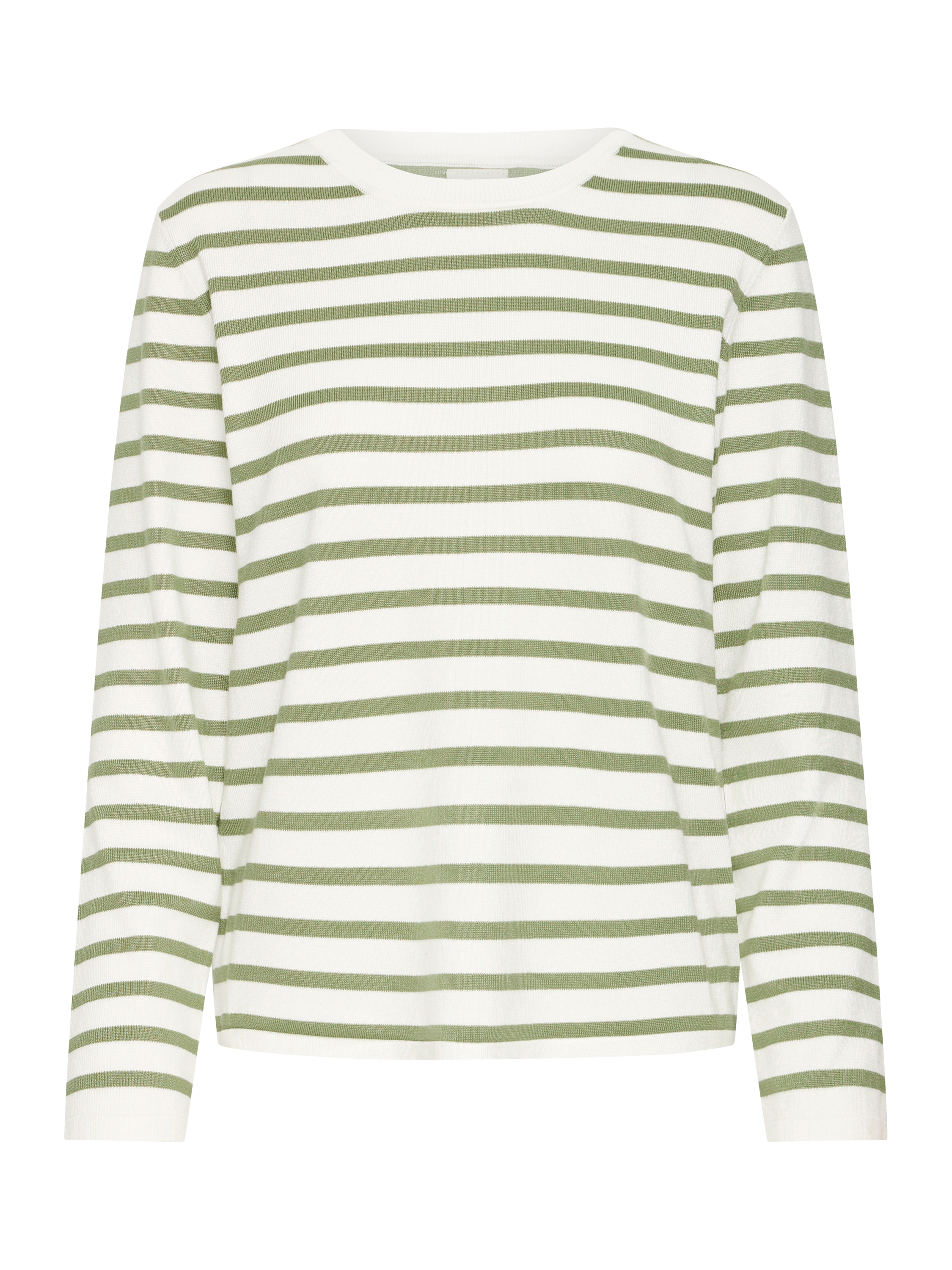 A stripe crew neck jumper by ICHI. Its regular fit and soft viscose blend keep you comfortable, while the playful pattern adds interest to your everyday look.