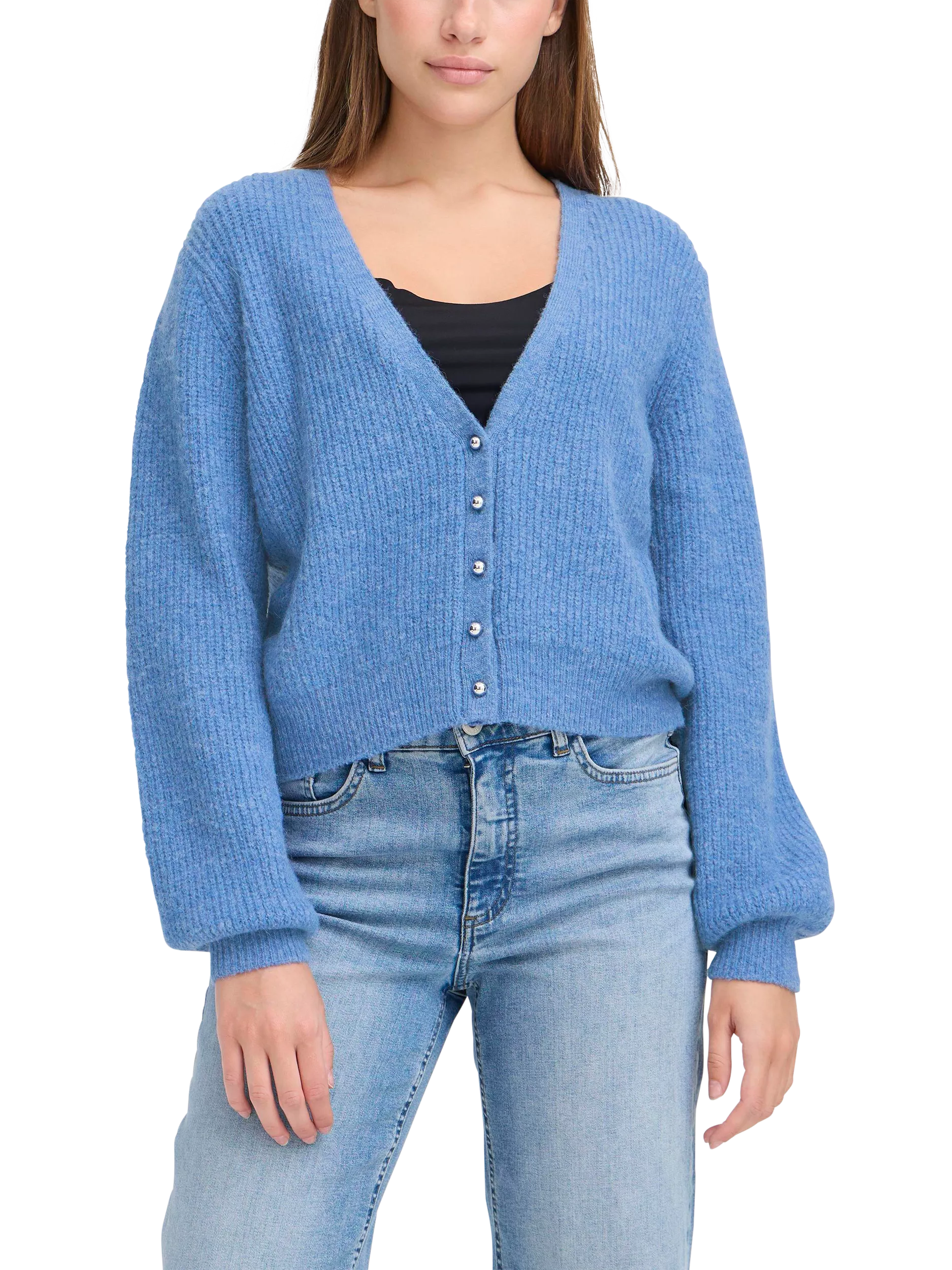 This ICHI cardigan wraps you in comfort with a soft wool blend and easy V-neck style. The relaxed fit and practical button fastening make it perfect for layering, keeping you warm wherever your day takes you.