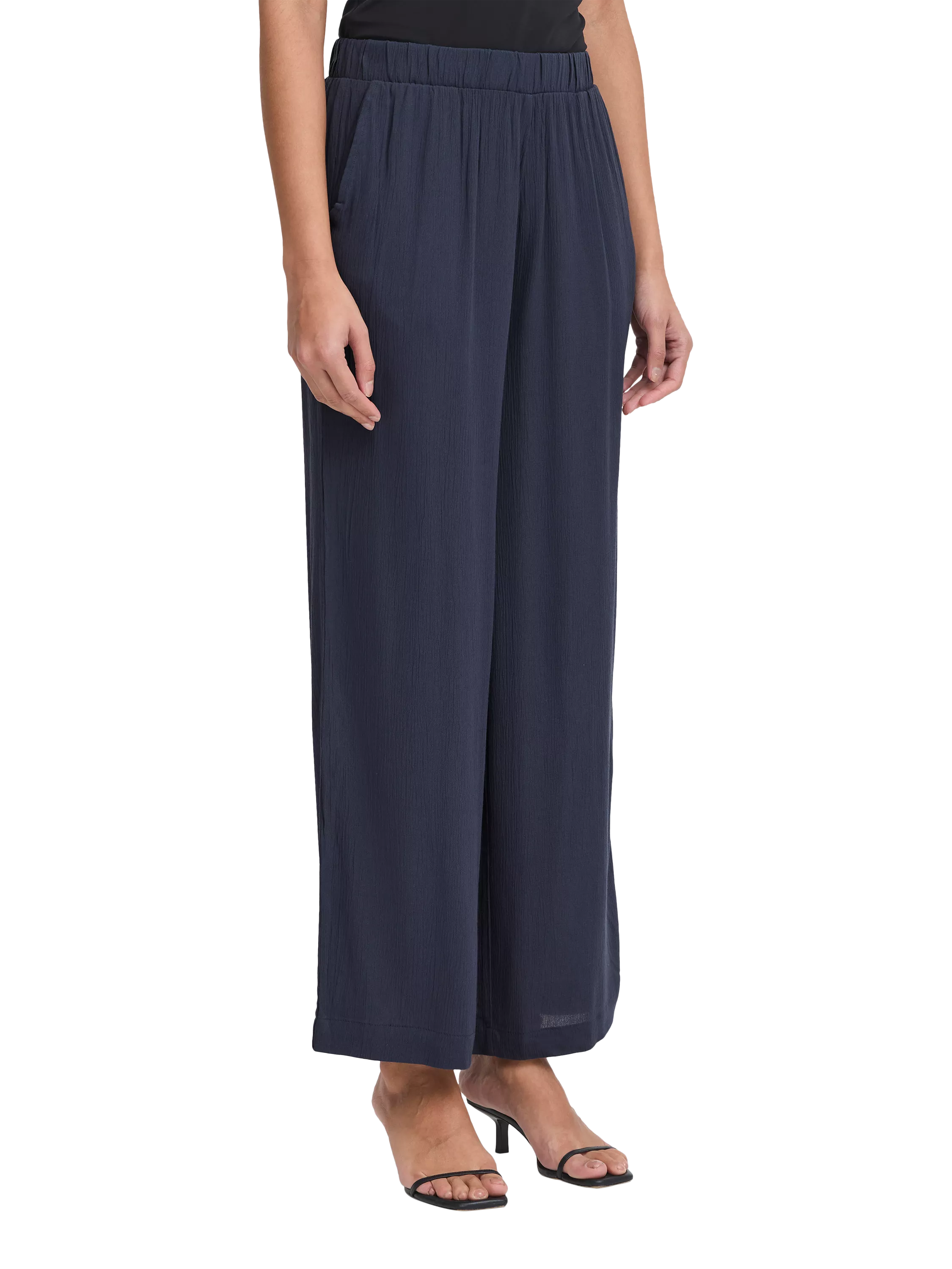 Perfectly tailored to a wide leg, this pair of trousers by ICHI sit high on the hips and fall to cropped hems.