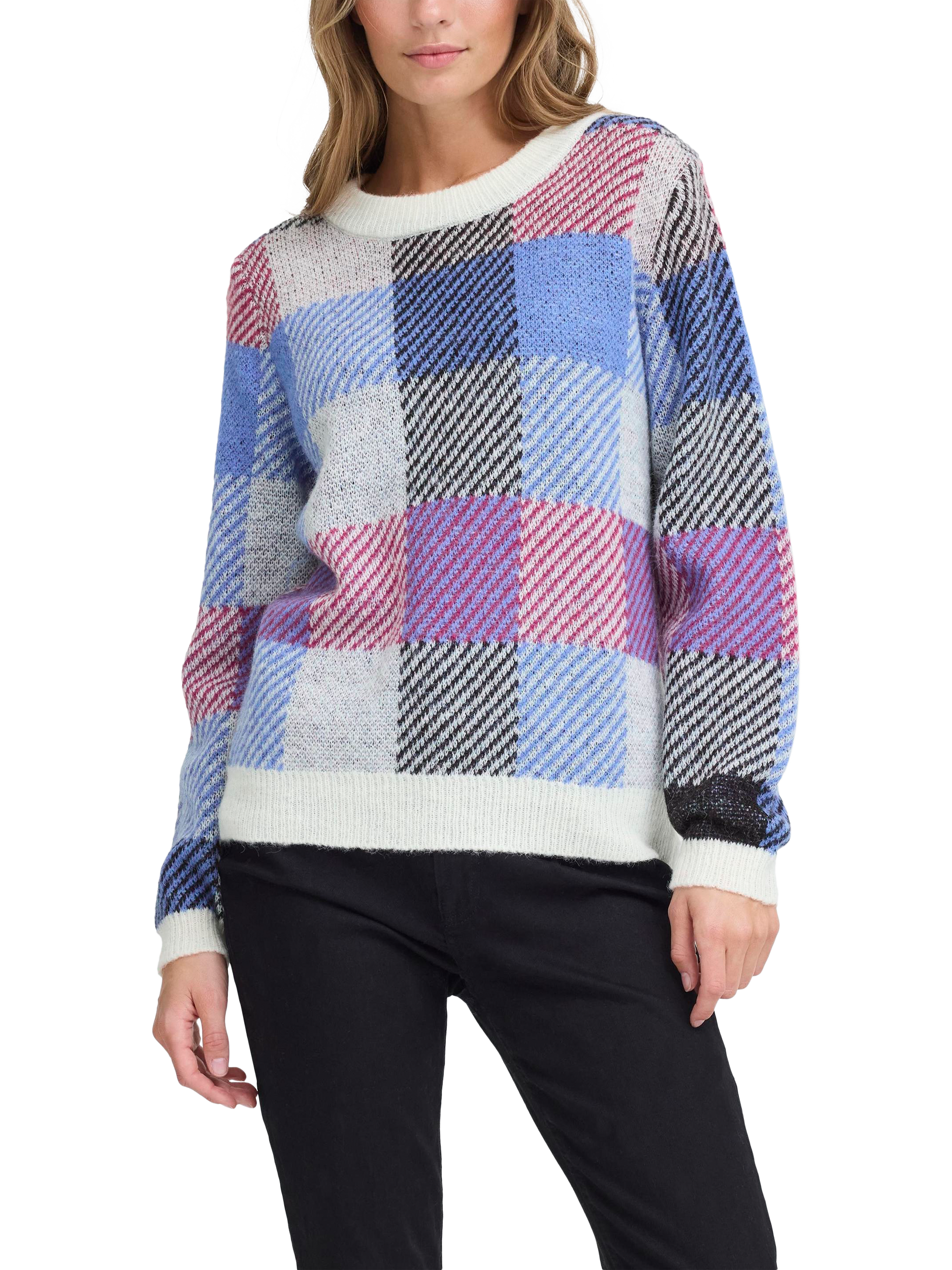 A check jumper by ICHI. Its crew neck and medium-weight knit keep you comfortable at work or play. Distinct pattern and long sleeves let you express yourself while staying effortlessly cosy all day.