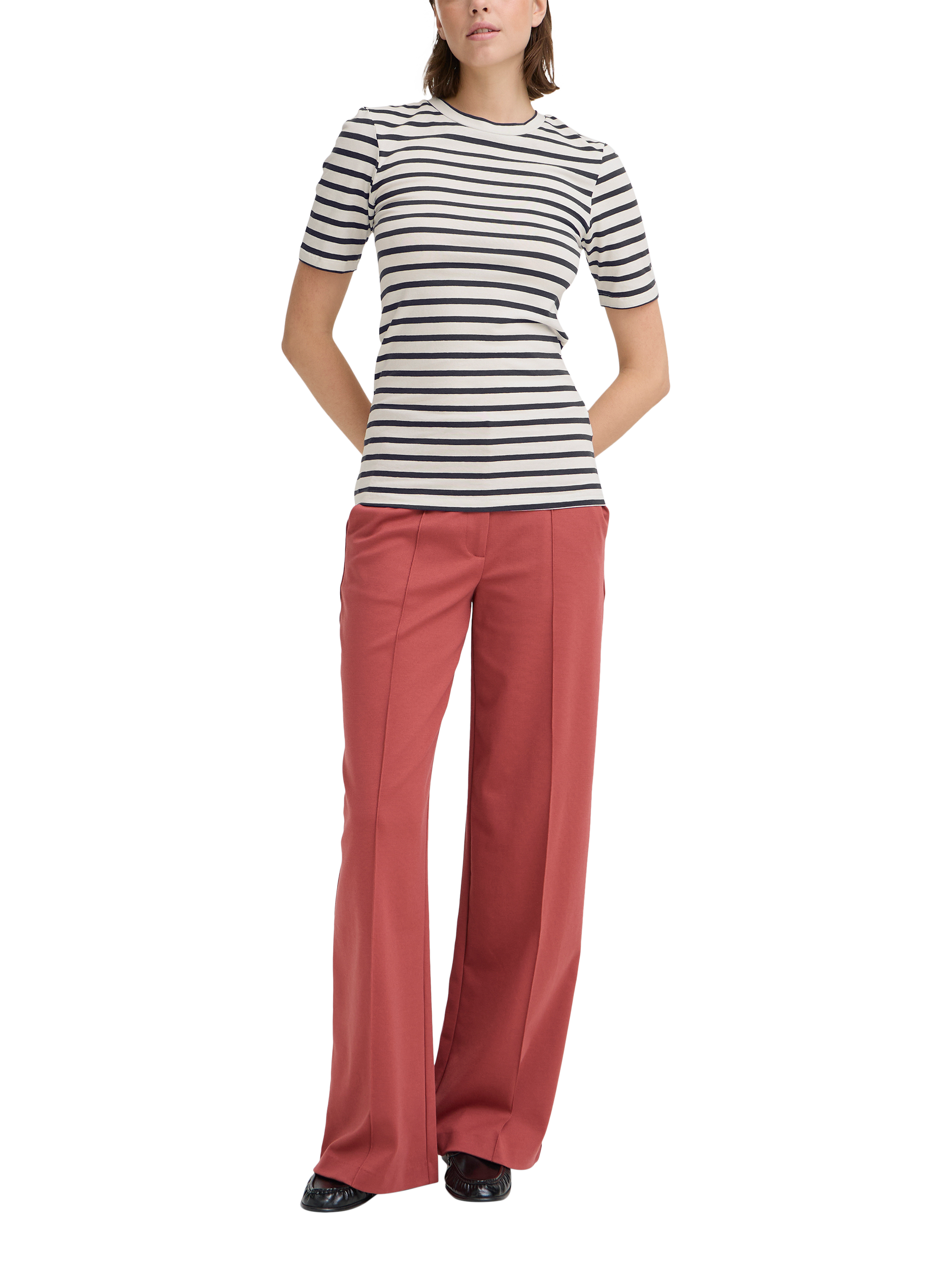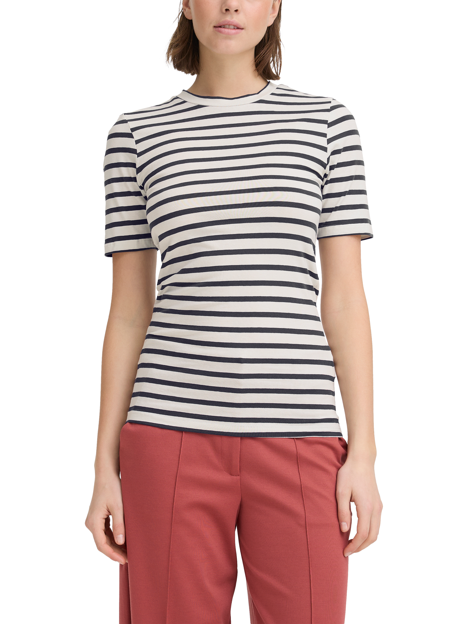 An everyday T-shirt by ICHI, offered in a cotton blend for a soft feel. Featuring a crew neck and short sleeves, it's a wardrobe classic with neat striping. One for your everyday lineup.