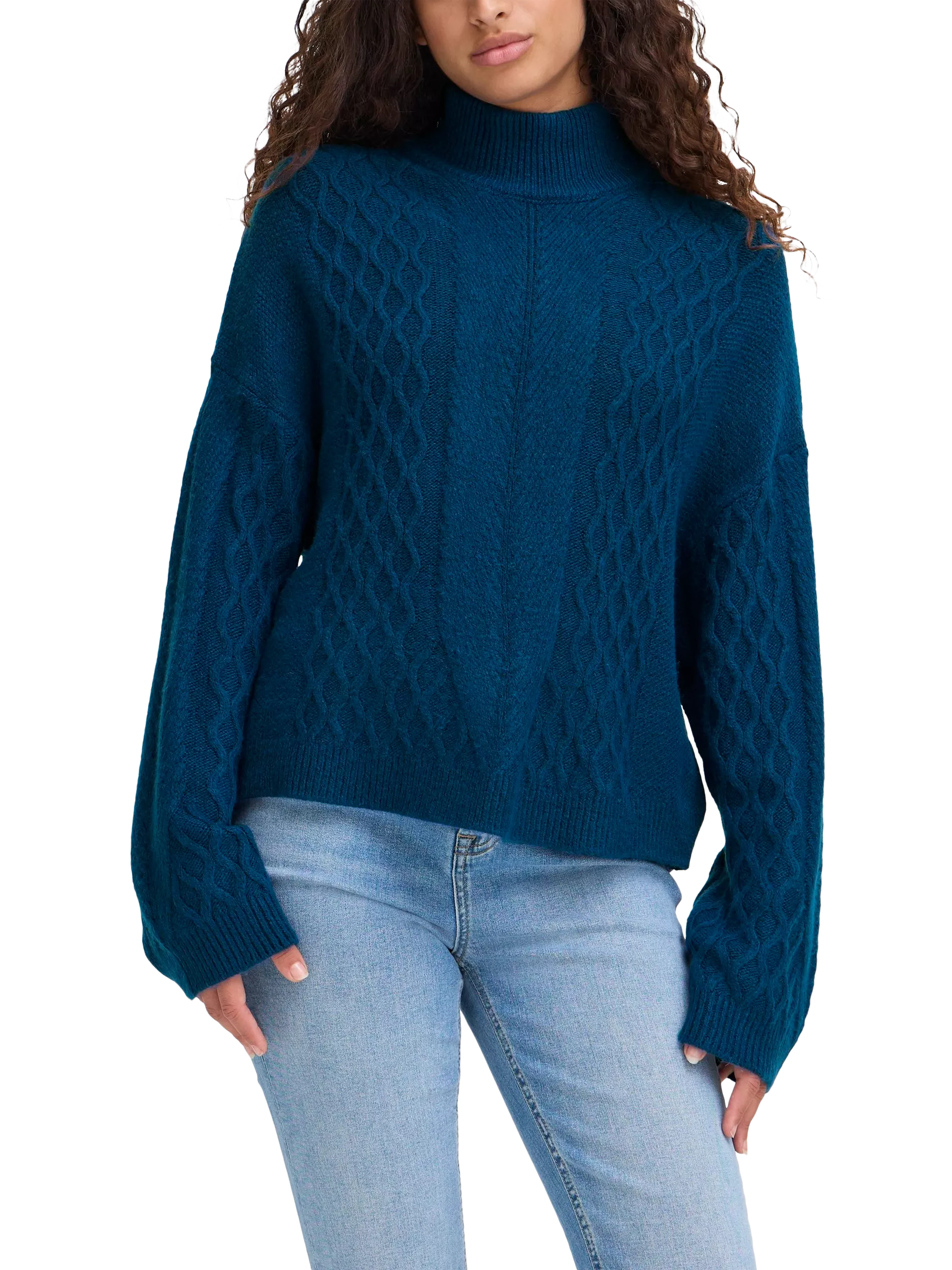 This chunky knit jumper from ICHI features a high neck and textured design, keeping you warm and comfortable on colder days. Its soft acrylic blend ensures easy layering for any occasion, helping you feel cosy.