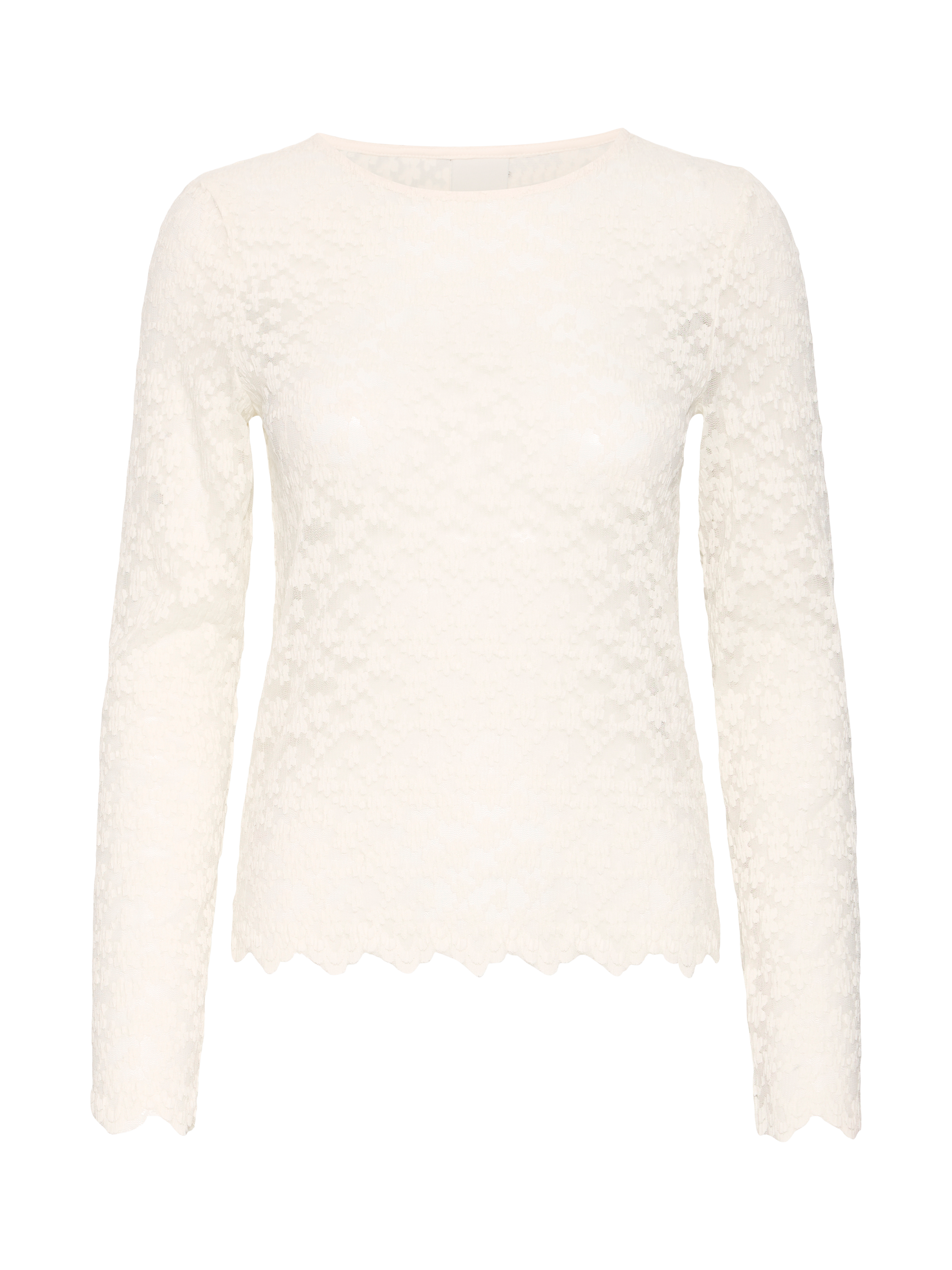 A long-sleeved top from ICHI. With a crew neck and made with all-over floral lace, it's the ultimate elevated piece.