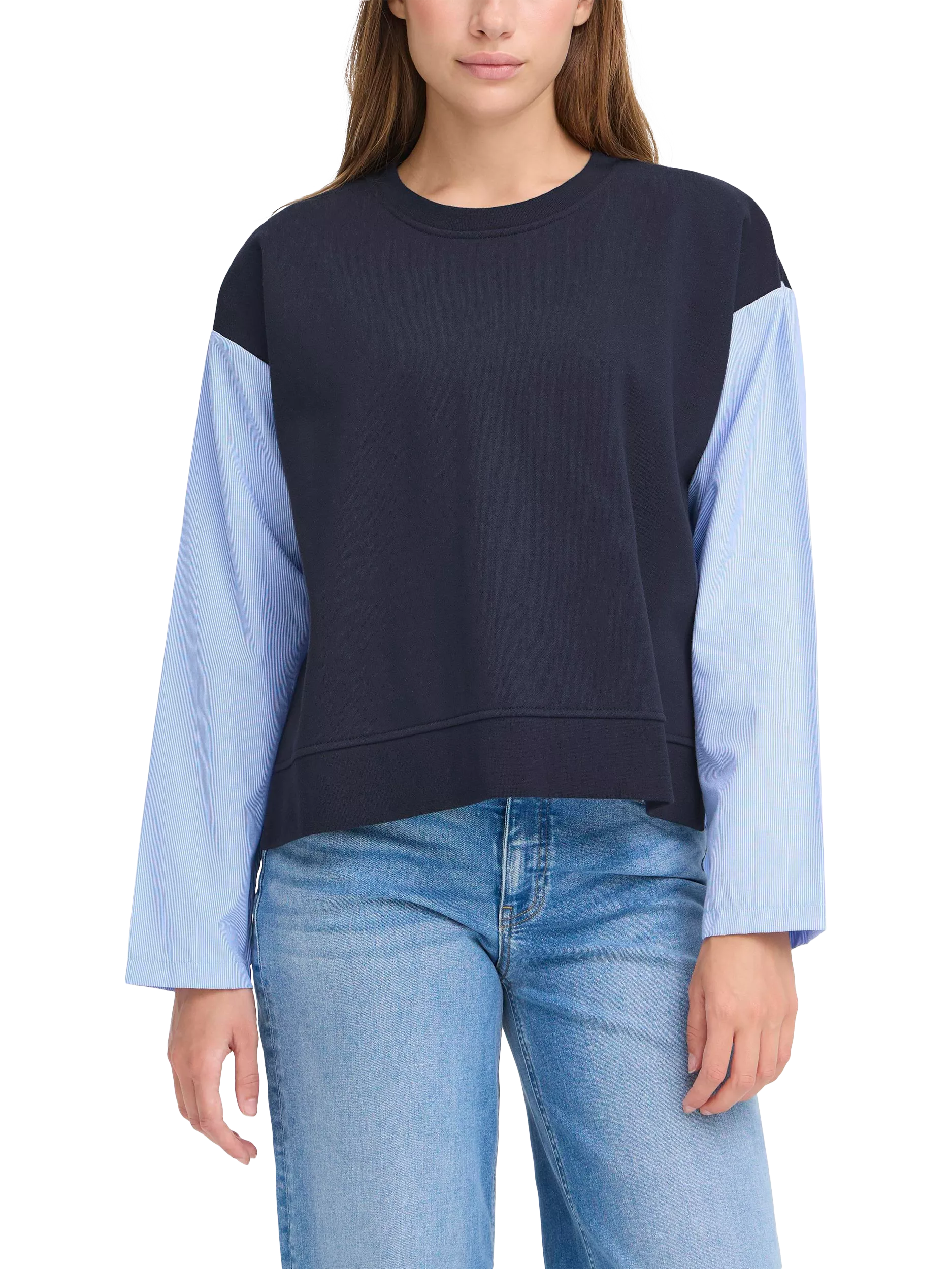 This crew neck sweatshirt keeps you comfortable all day while the bold colour block design adds a clever twist. In a soft cotton blend with an easygoing relaxed fit.