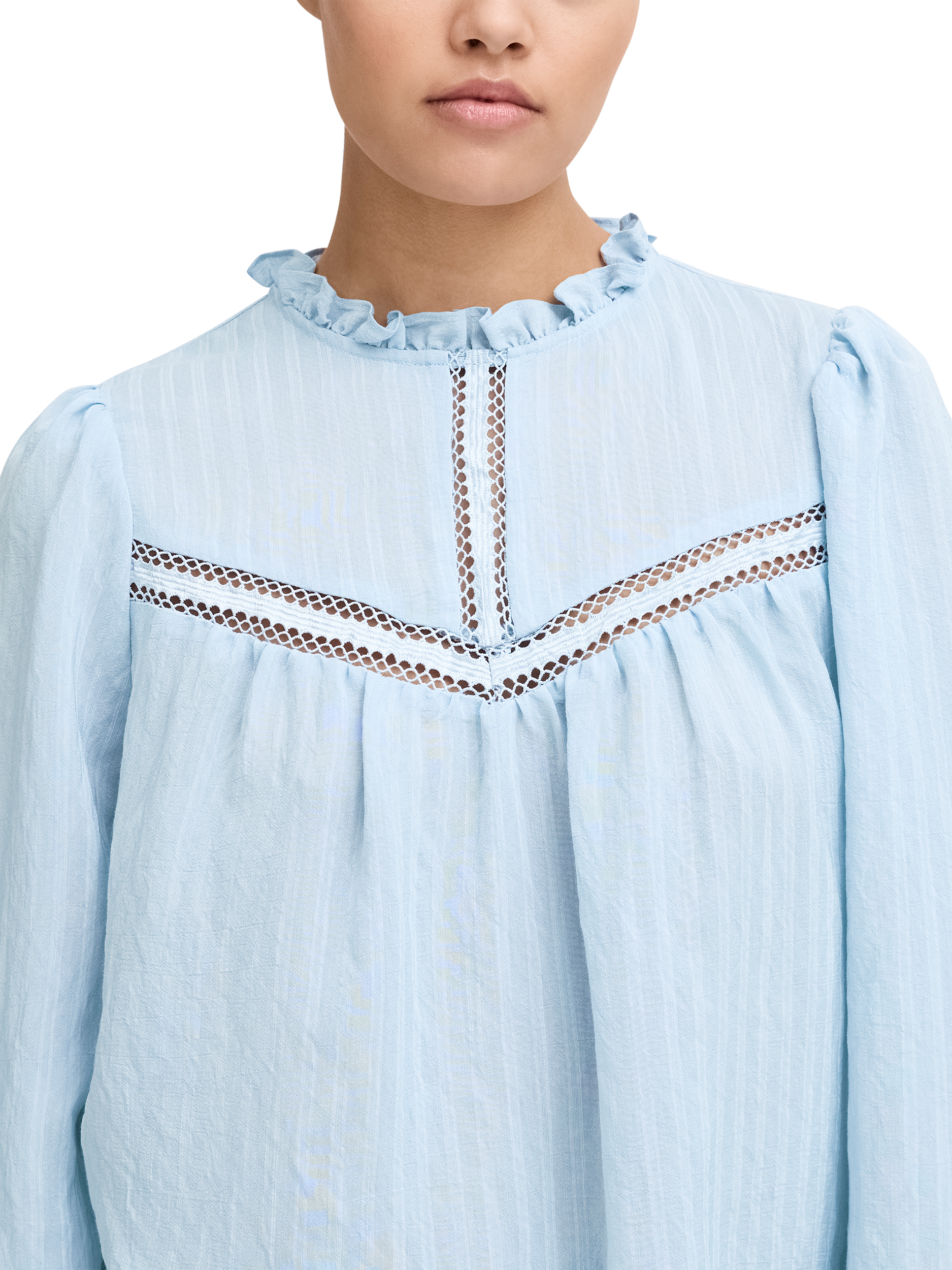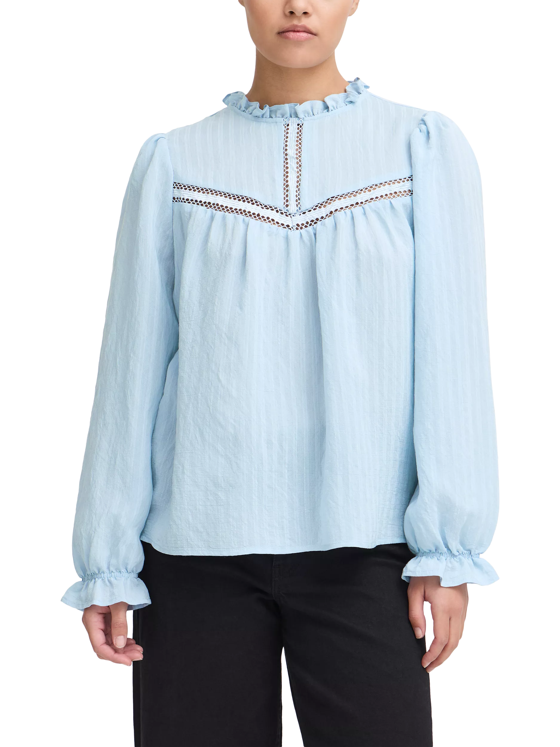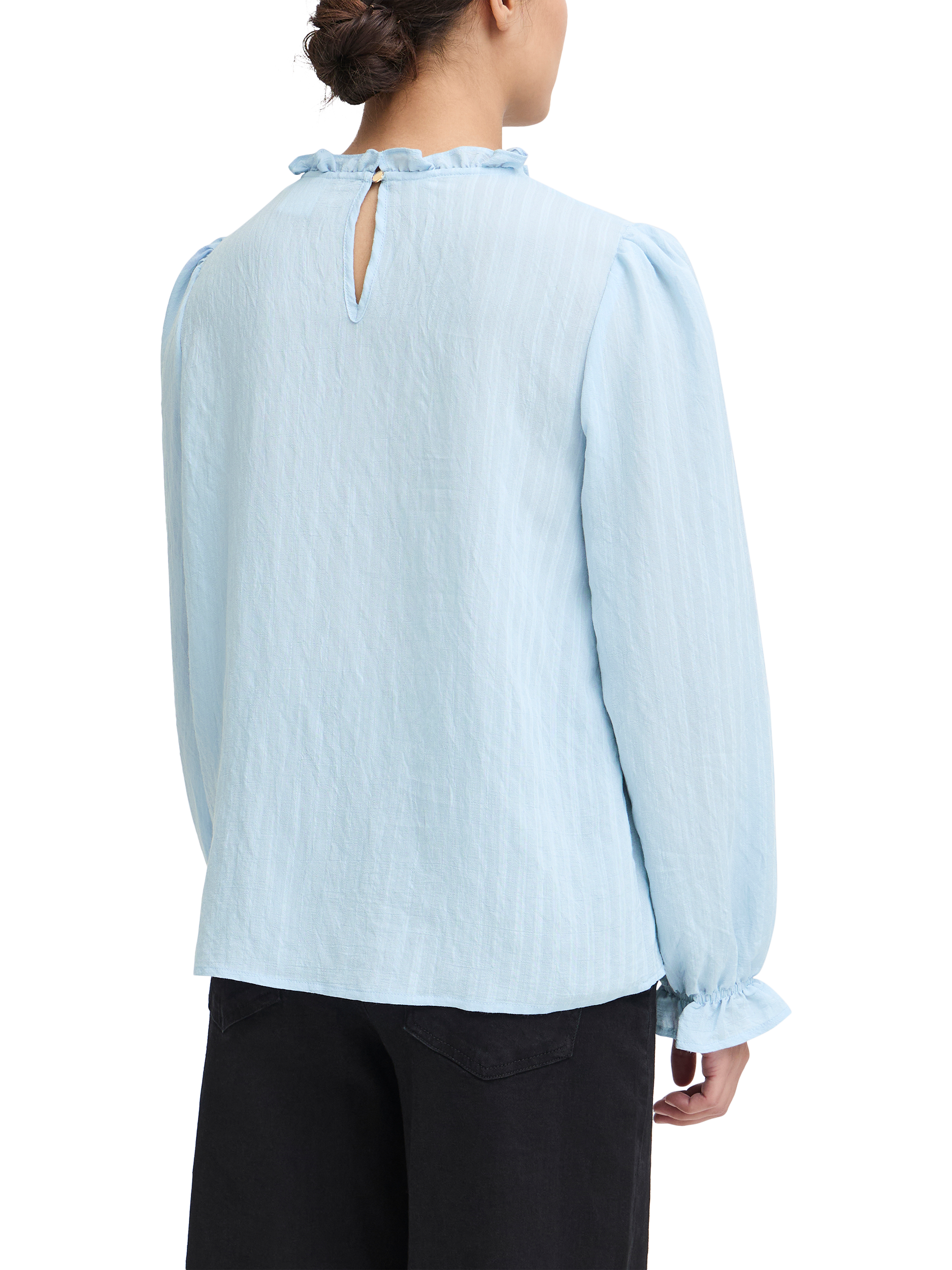 An effortless choice, this blouse from ICHI effortlessly blends style and comfort, making it a must-have for any wardrobe. Cut with a frilly high neck and long sleeves, it is made with light yet robust blended fabric with panelled detailing.