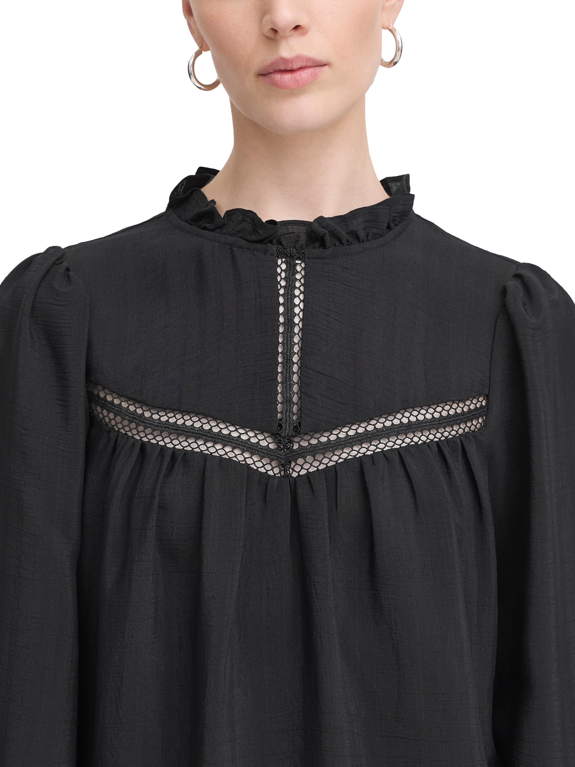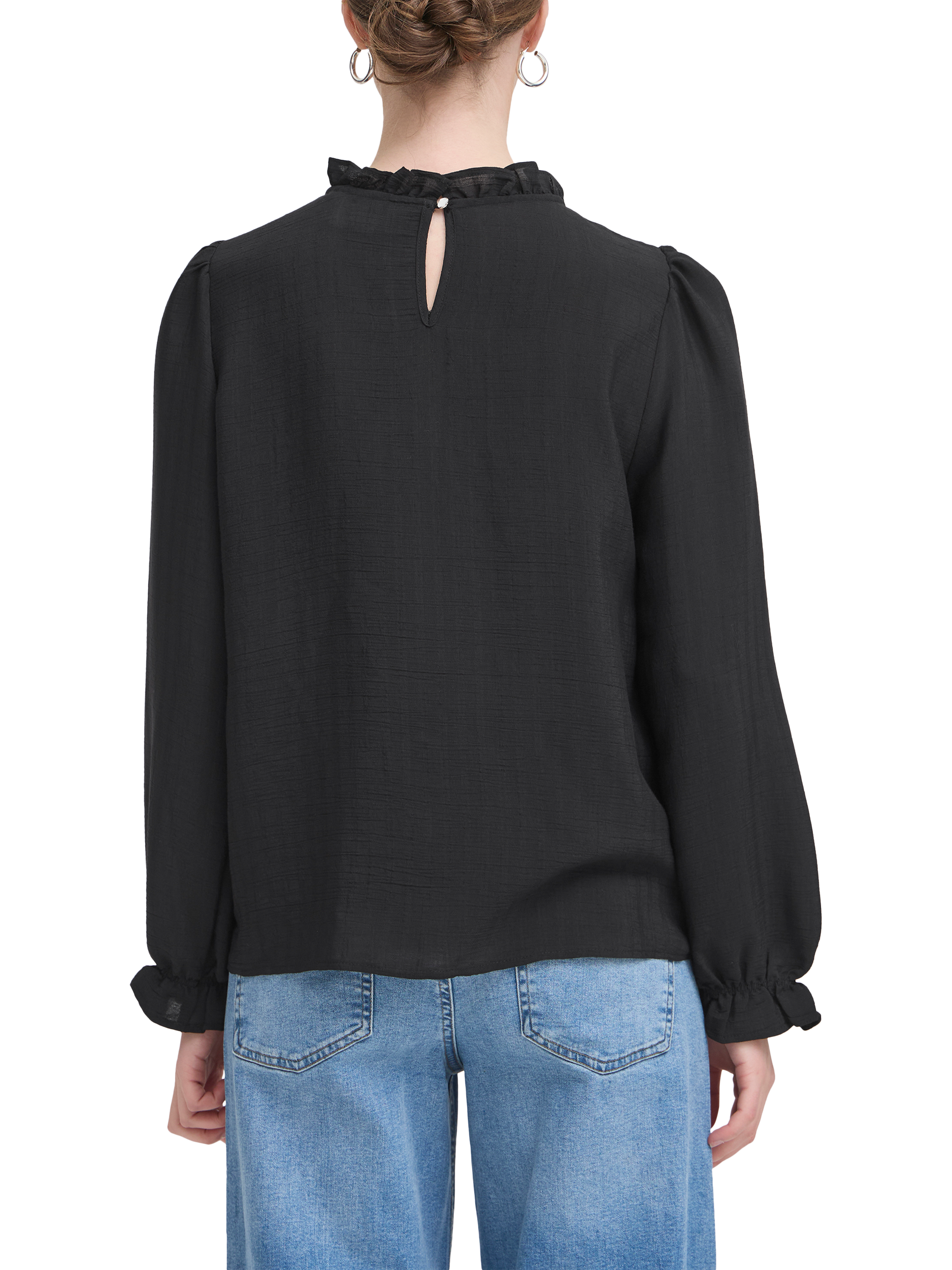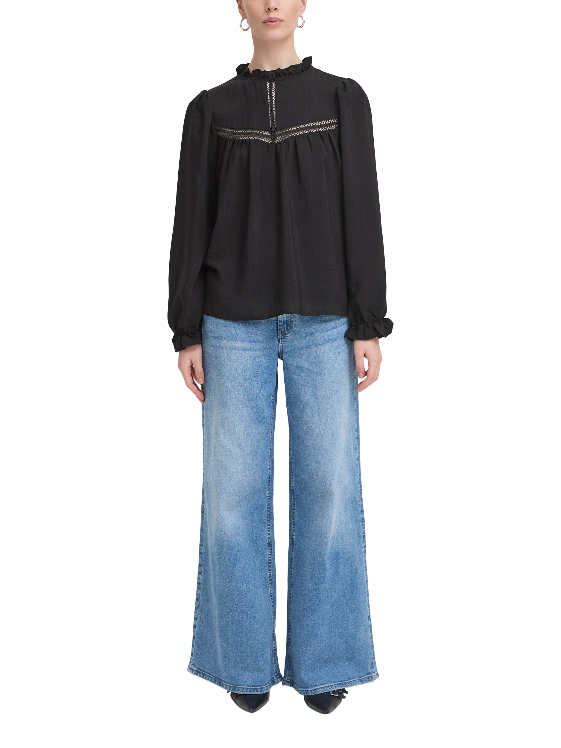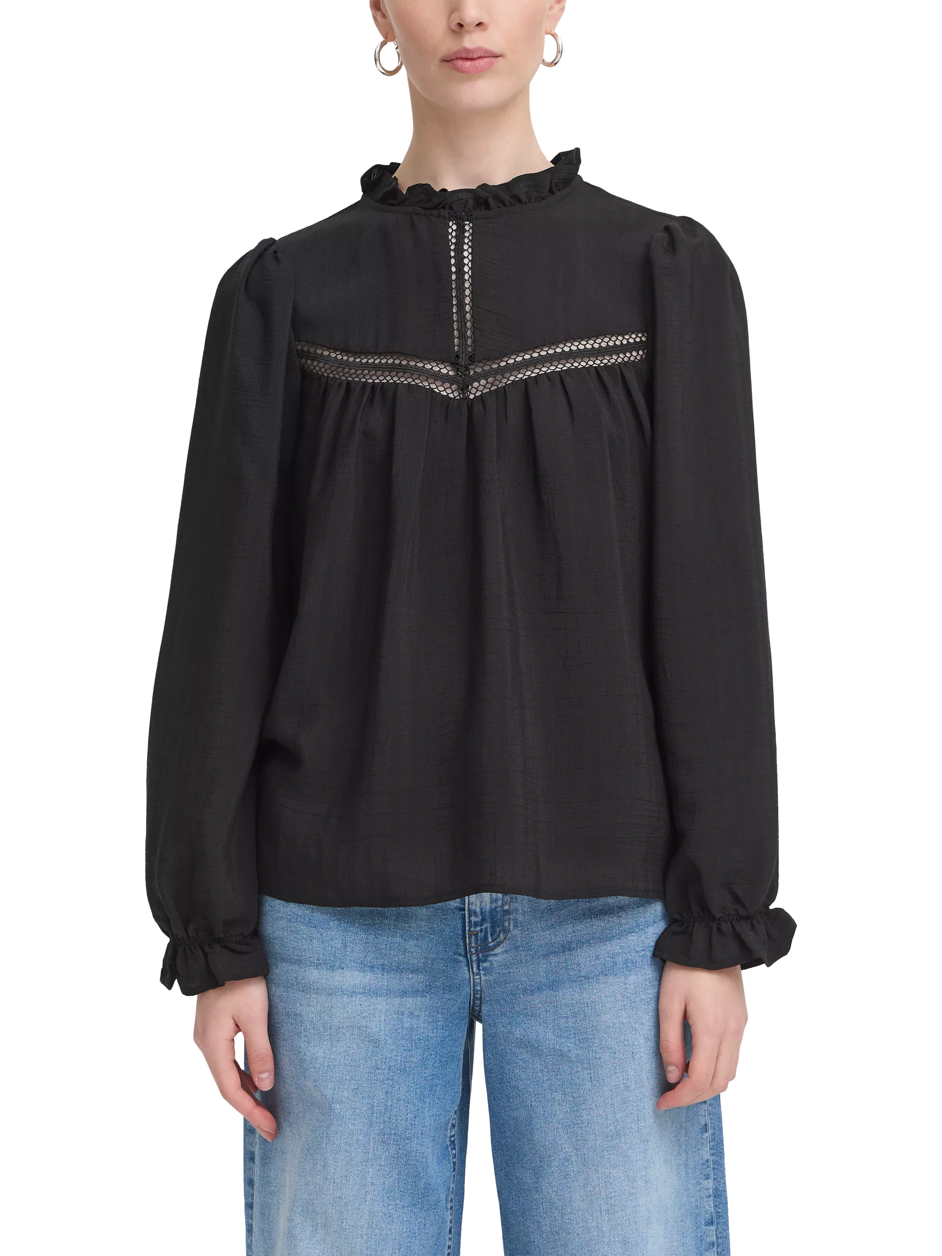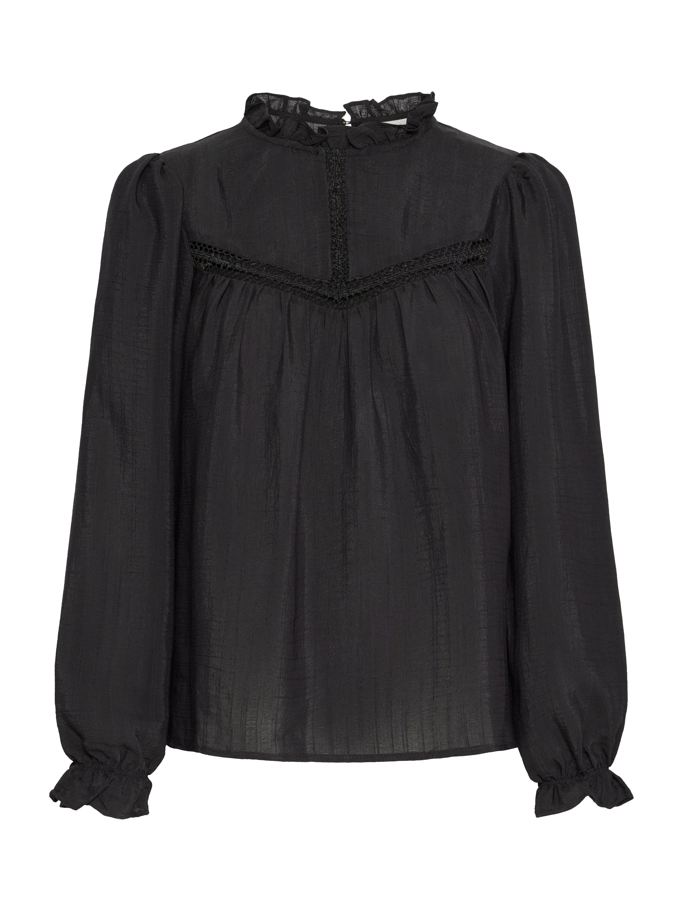 An effortless choice, this blouse from ICHI effortlessly blends style and comfort, making it a must-have for any wardrobe. Cut with a frilly high neck and long sleeves, it is made with light yet robust blended fabric with panelled detailing.