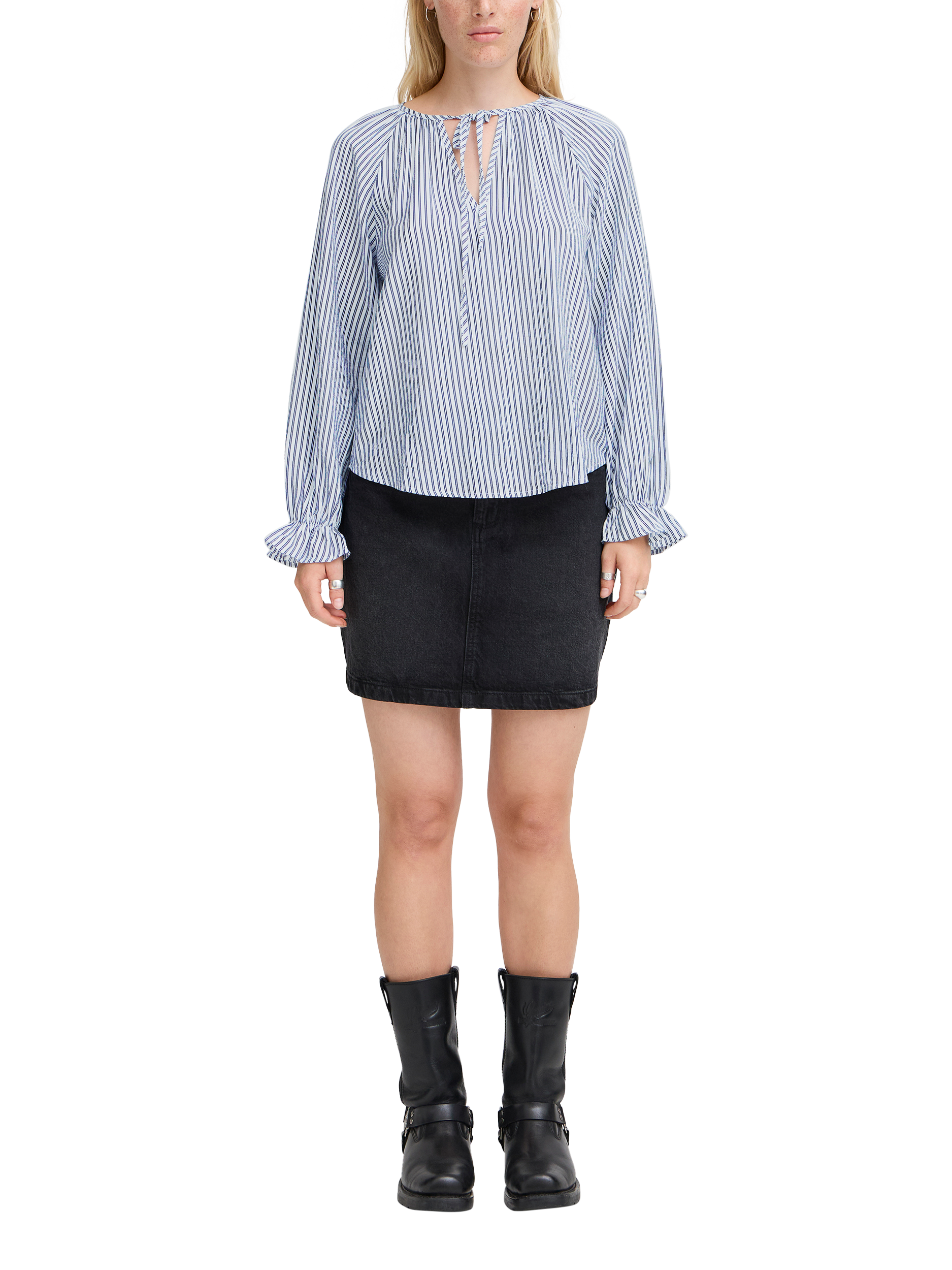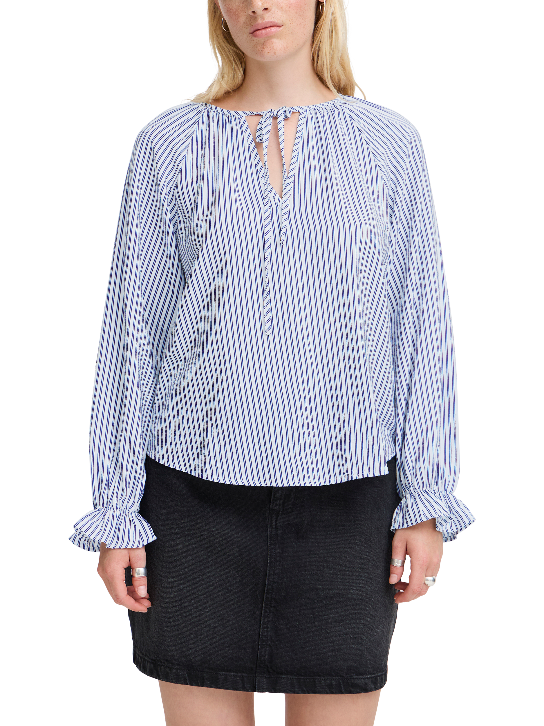 Ideal for casual outings and everyday wear, this stripe blouse from ICHI features a pretty tied neckline and long sleeves. Made from a soft viscose blend, it works well with slim-fit trousers for Monday morning meetings and smart-casual settings alike.