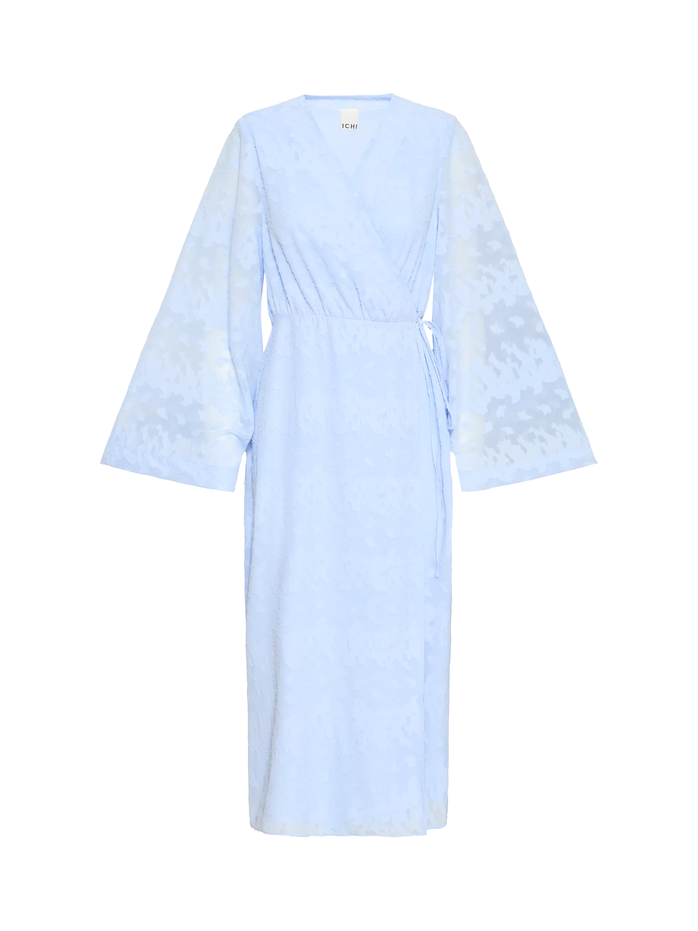 Championing practicality over formality in a wrap silhouette, this mid-length dress from ICHI is made from a lightweight, textured jacquard fabric. With a universally flattering v-neckline and wide long sleeves, it is a celebration for any occasion.