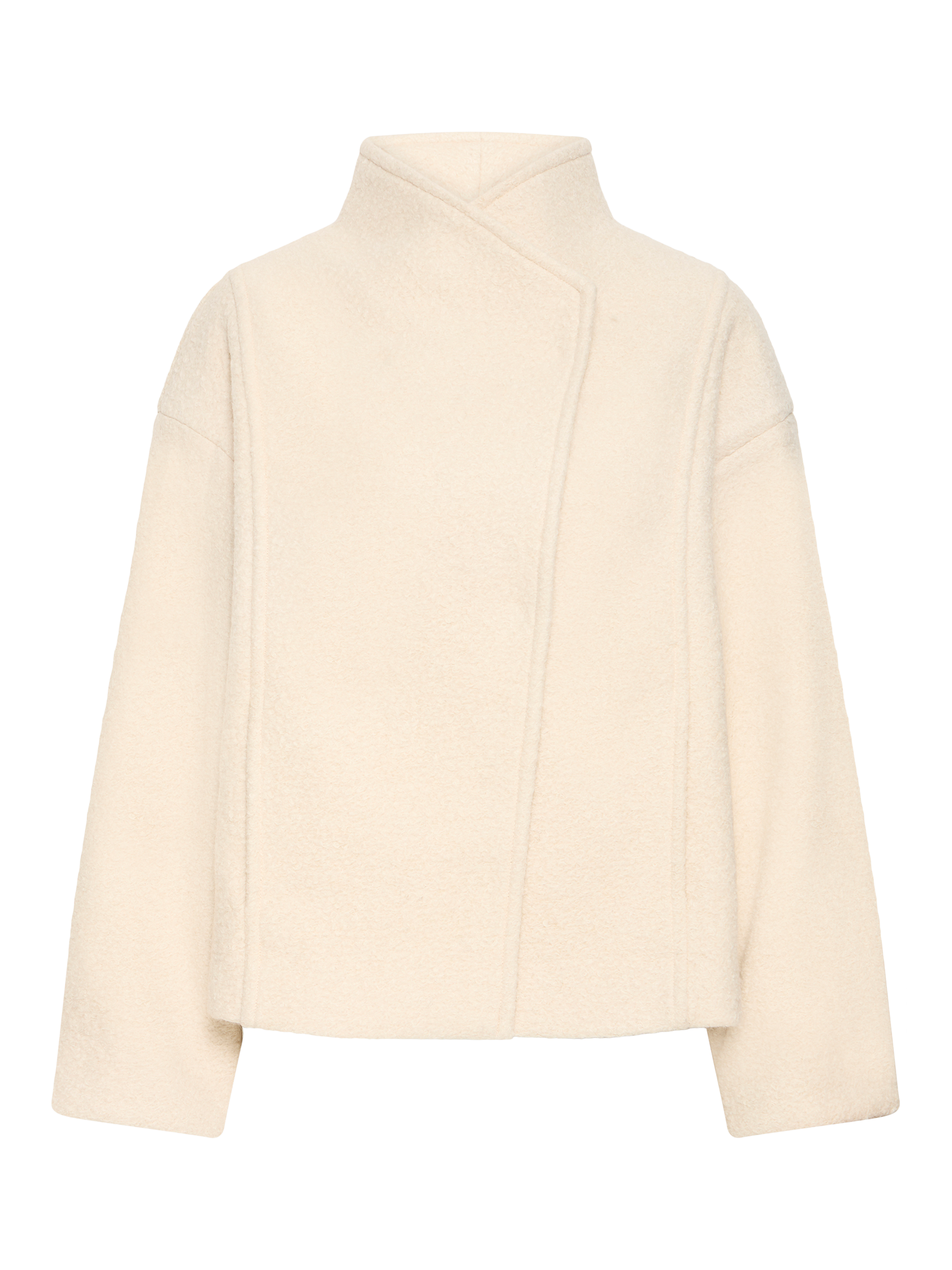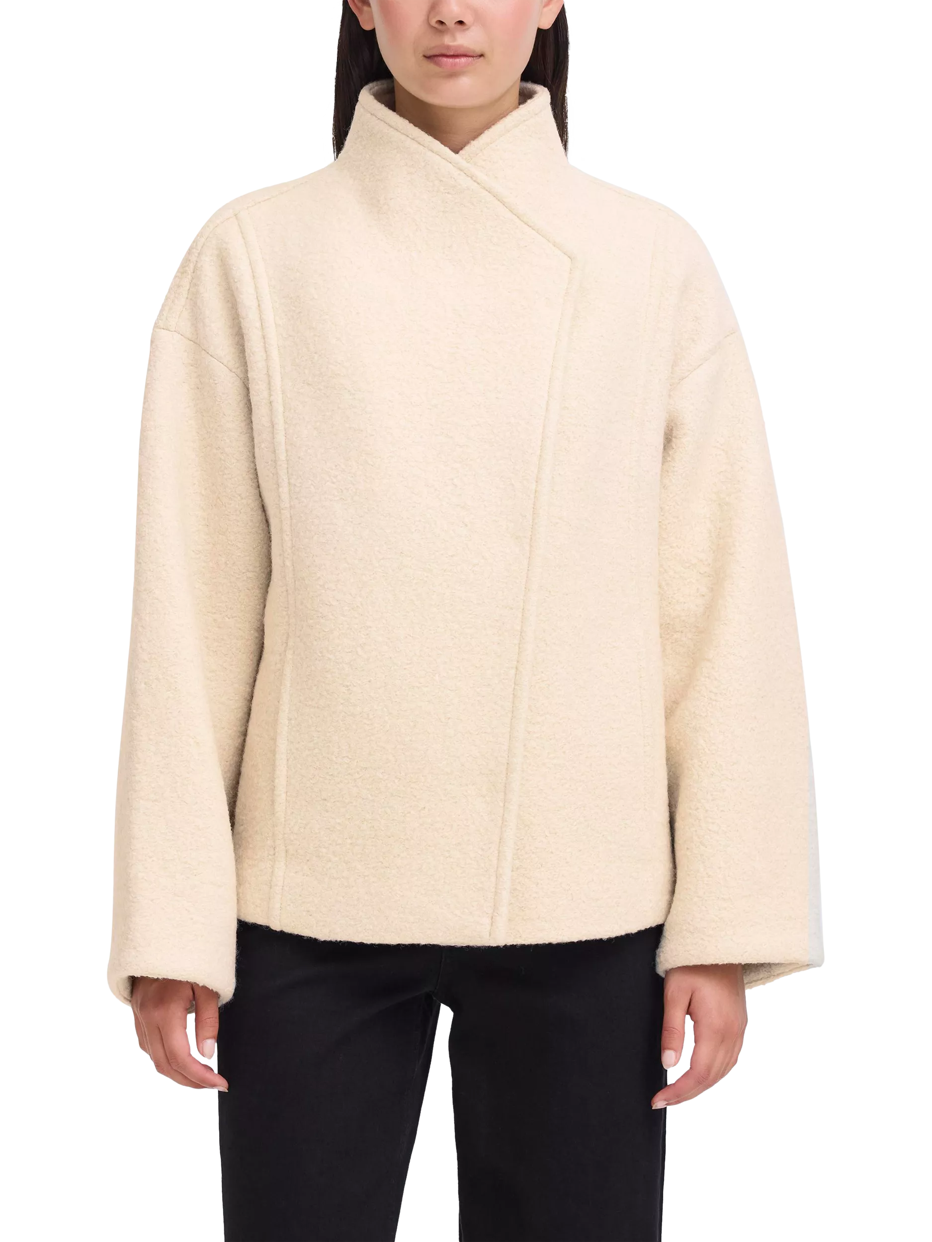Layer up in effortless comfort with this ICHI wool blend jacket. The high wrap neck and long sleeves keep you warm, while the faux fur style adds a fresh touch to your daily routine. Designed for everyday versatility.