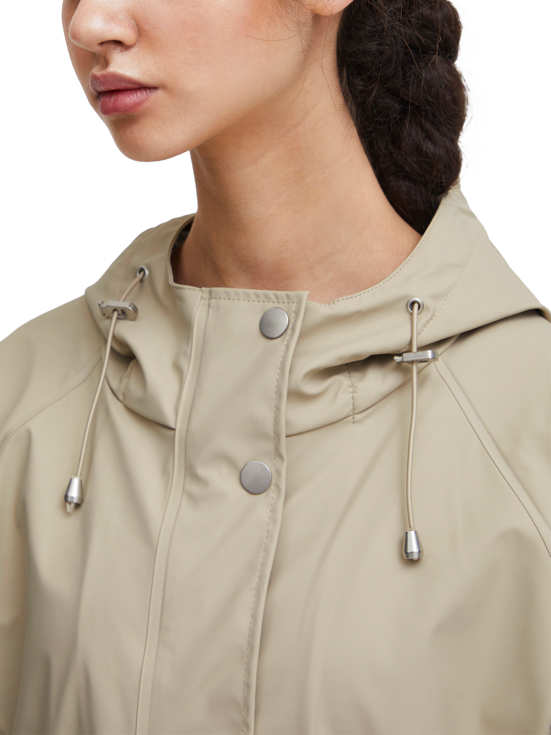 Packed with practicality, this raincoat from ICHI has a longline cut for a sleek profile. Topped with a hood, it is made from robust fabric that's perfect to pull on when the weather's being unpredictable.