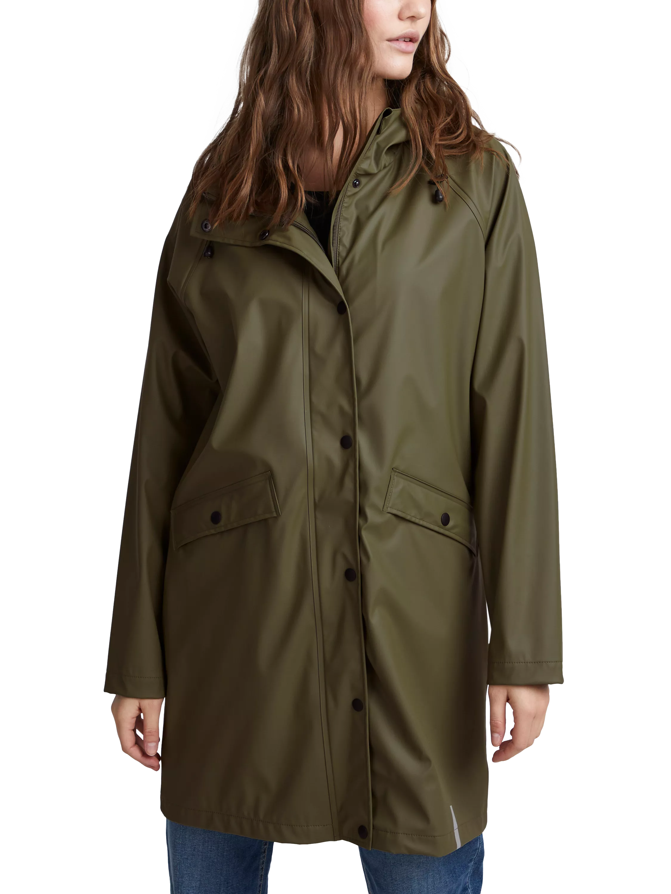 Packed with practicality, this raincoat from ICHI has a longline cut for a sleek profile. Topped with a hood, it is made from robust fabric that's perfect to pull on when the weather's being unpredictable.