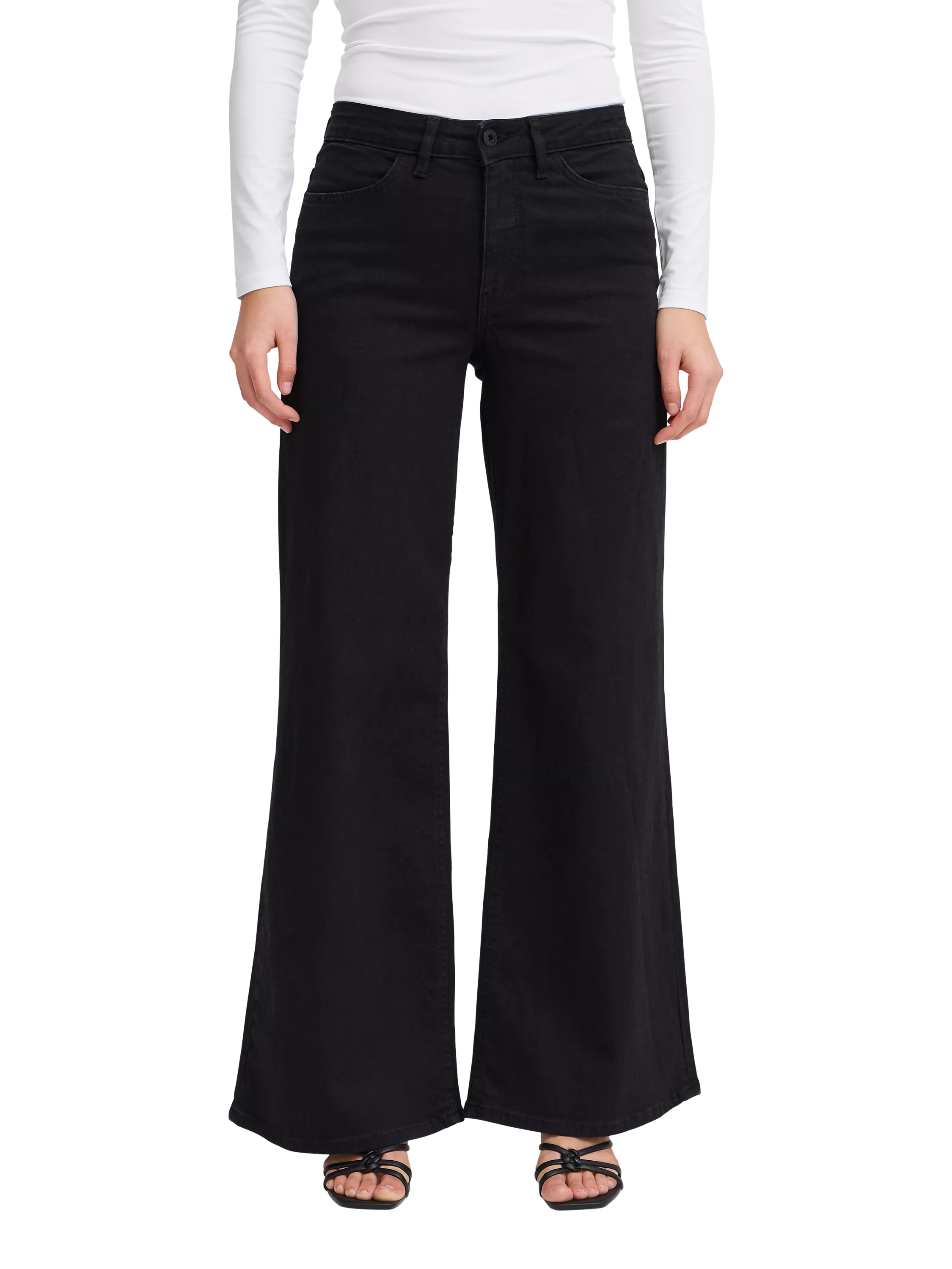 Making a statement with their wide leg silhouette, these jeans from ICHI are cut from robust denim and come with a comfortable mid rise and a zip fly.