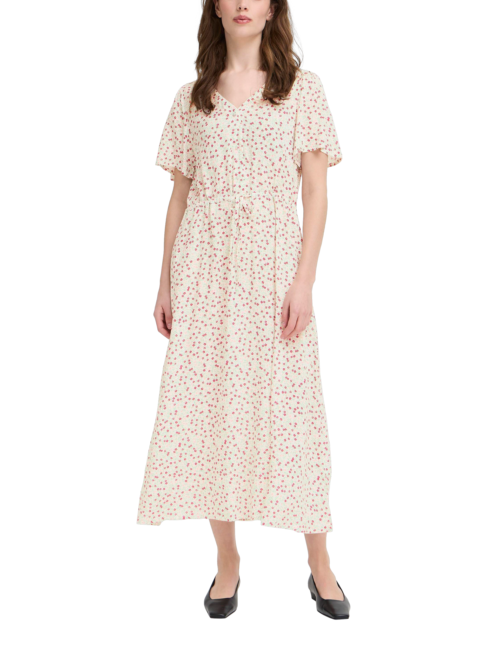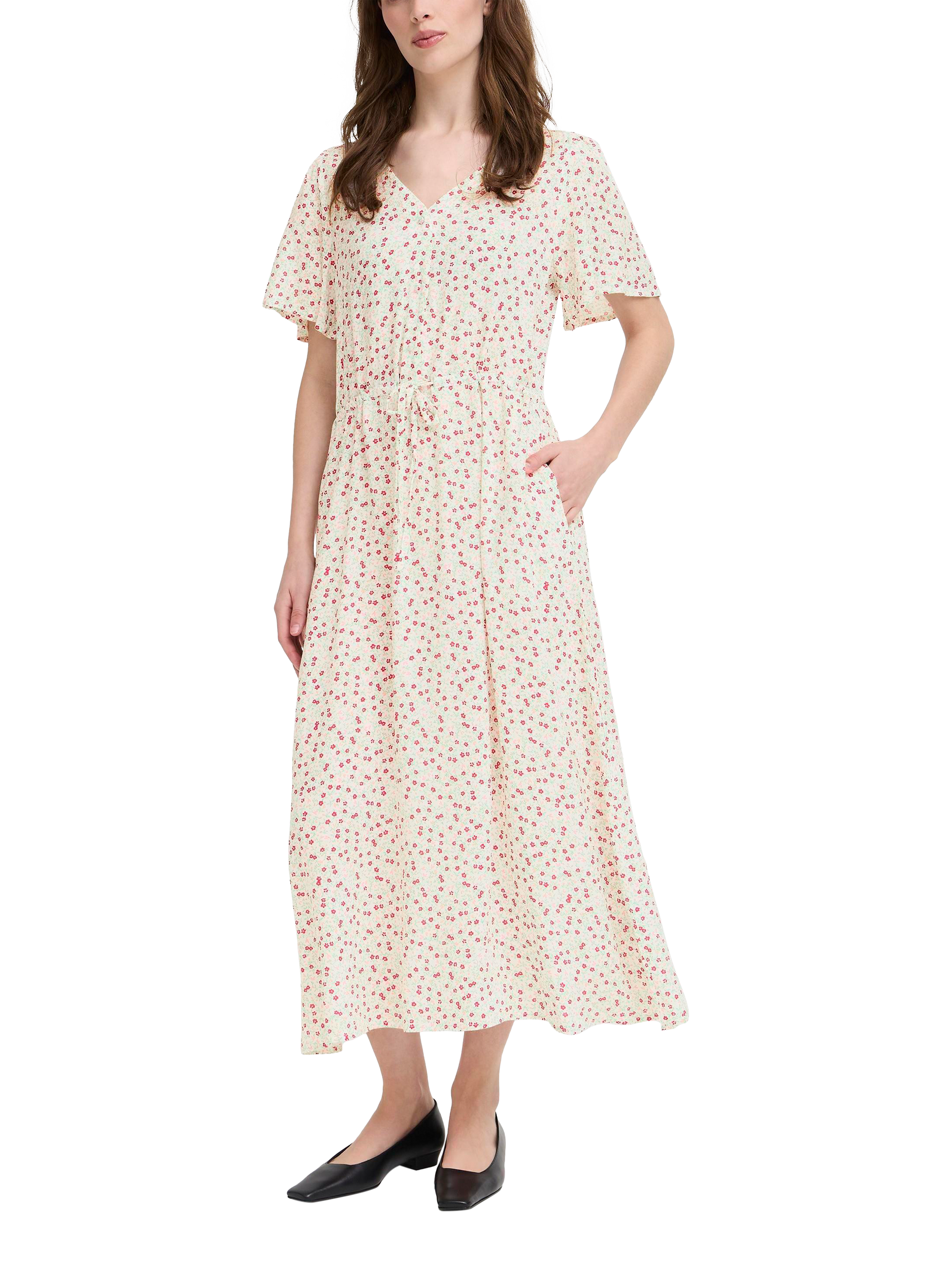 Entirely flattering with its A-line shape, this mid-length dress from ICHI is made from whisper-weight viscose. With a universally flattering v-neckline and short sleeves, this style proves that florals aren't just for spring.