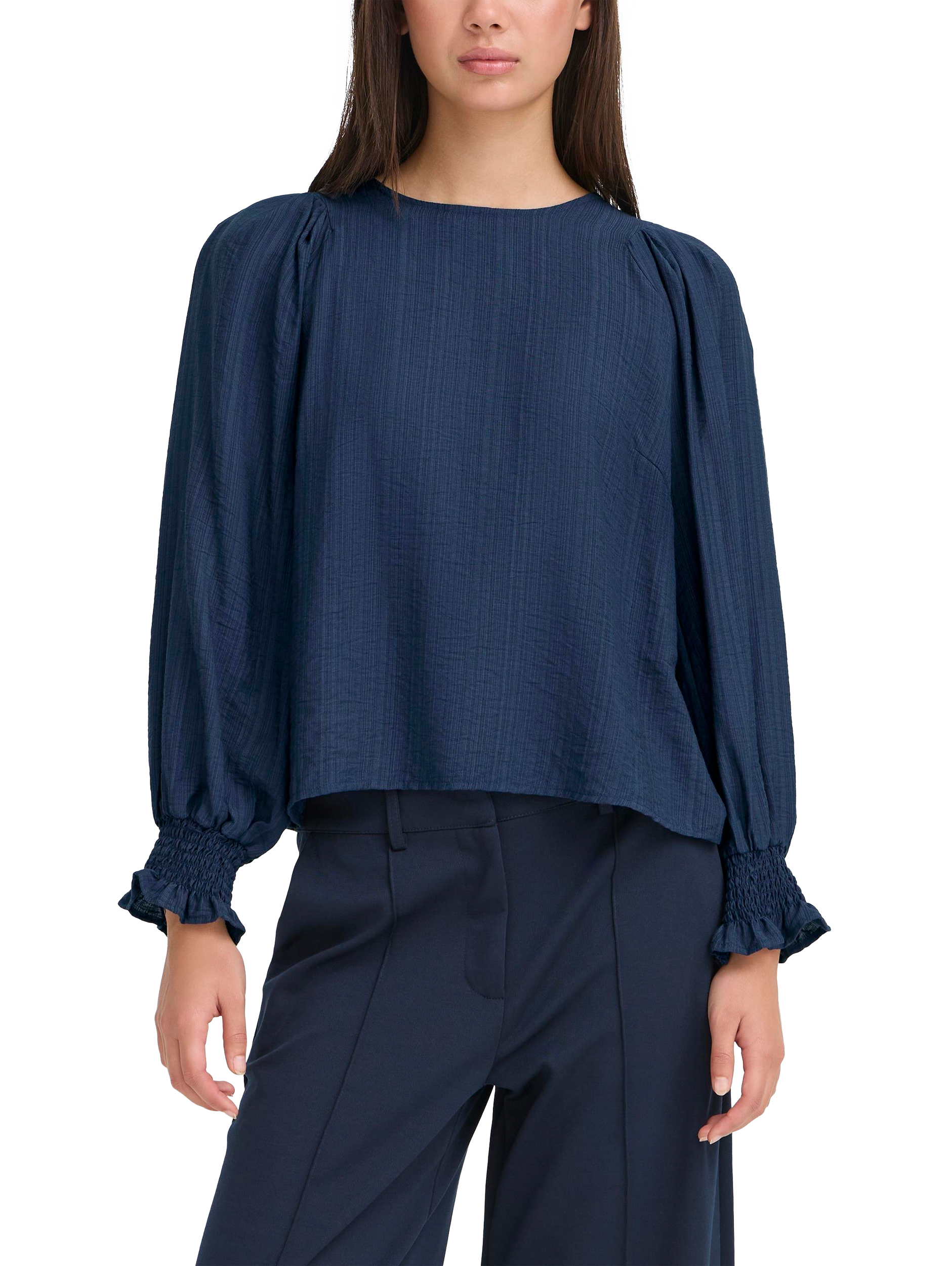 An effortless blouse from ICHI, blended with light viscose. Featuring a crew neck and long sleeves, the plain colour means it goes with everything. Casual, comfortable, and effortlessly chic.