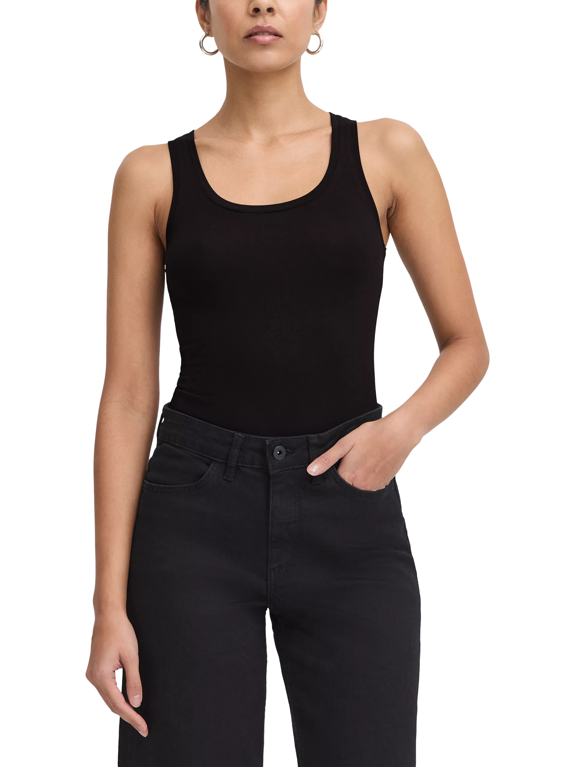 A wardrobe essential, this vest top from ICHI is free-from-fuss for timeless appeal. Cut with a scoop neckline, it is made from a light yet durable blended fabric.