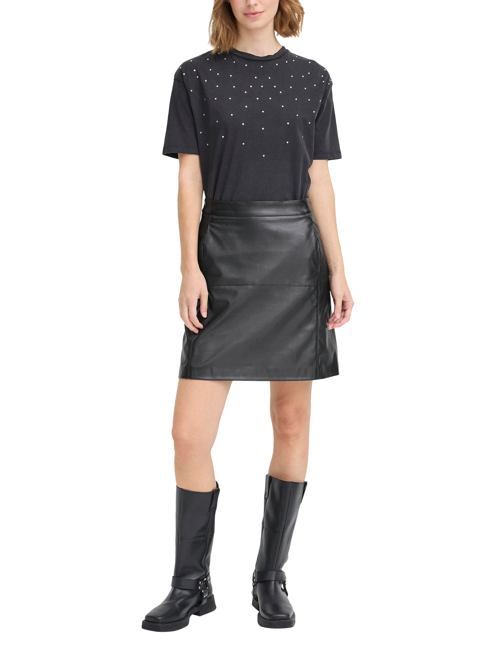 Designed from faux leather to a mini cut, this skirt by ICHI comes in an A-line with a zip closure.