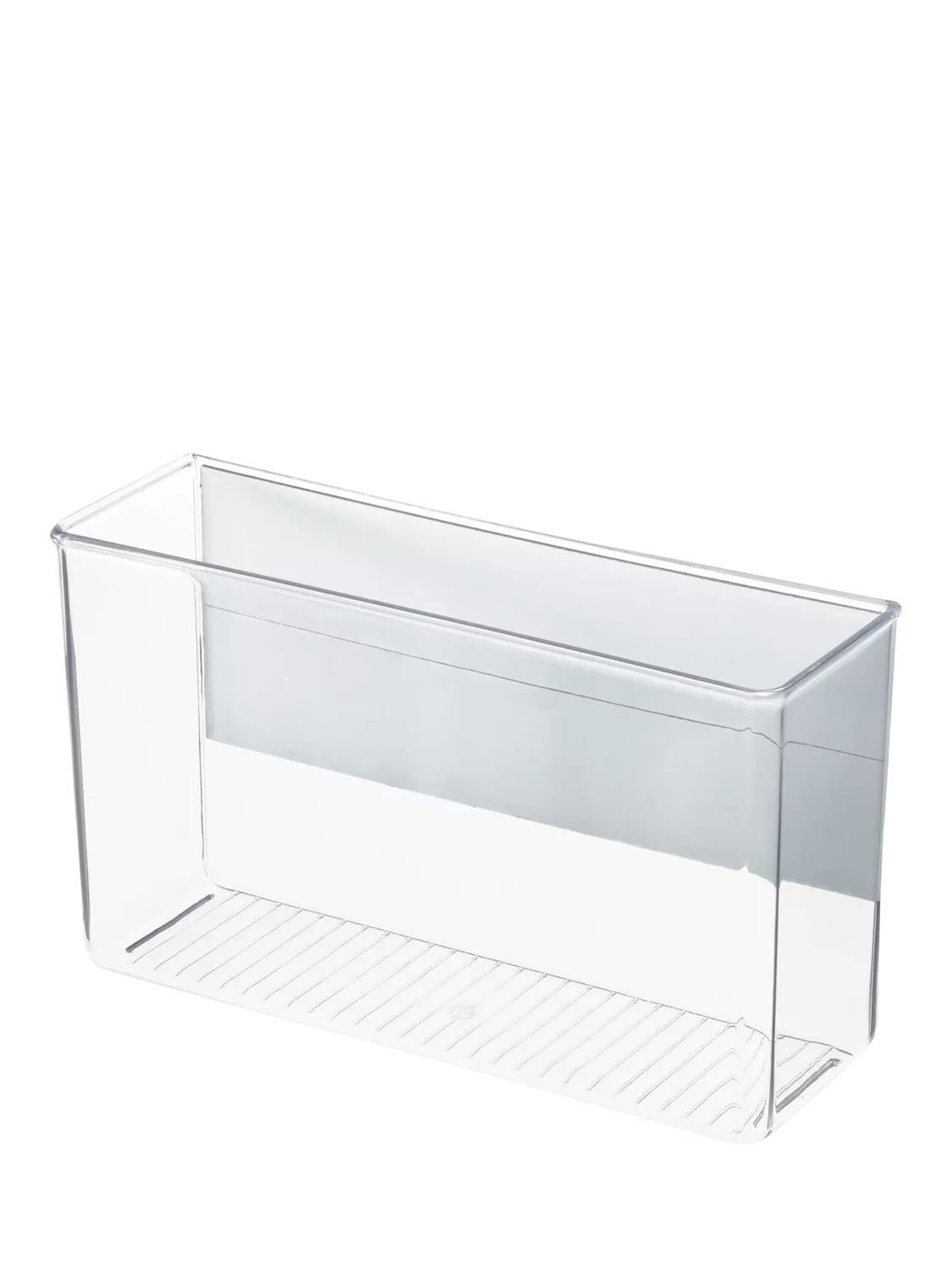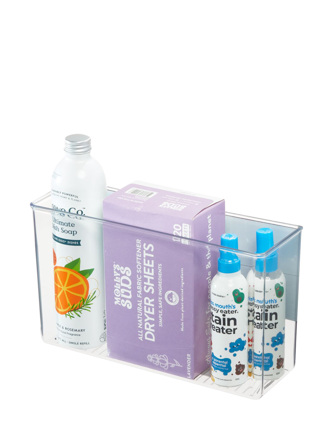 It features an open top and transparent design that ensures items are always visible and accessible, while the raised front of the bin keeps them securely in place until ready for use.