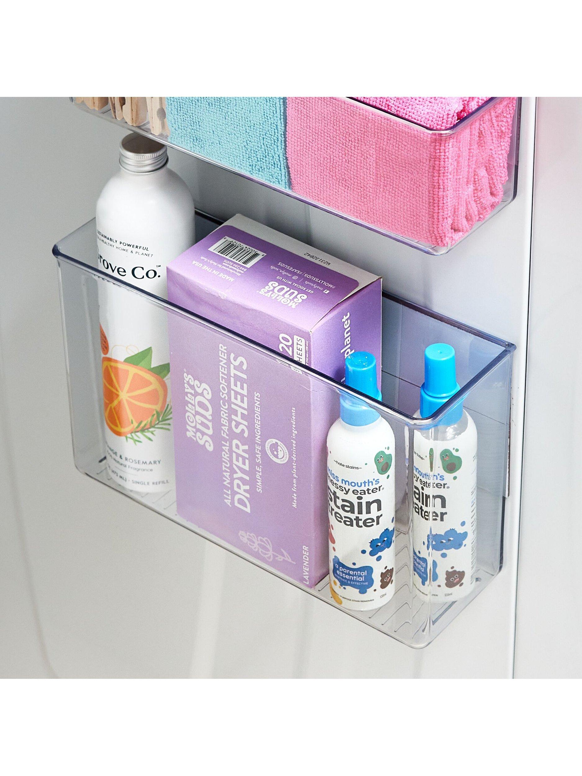 Use this hanging magnetic bin in the bathroom, bedroom, office, kitchen, utility room or in any room around the home where you need additional organization. The magnet at the back secures easily to washers, dryers, and other metal surfaces.