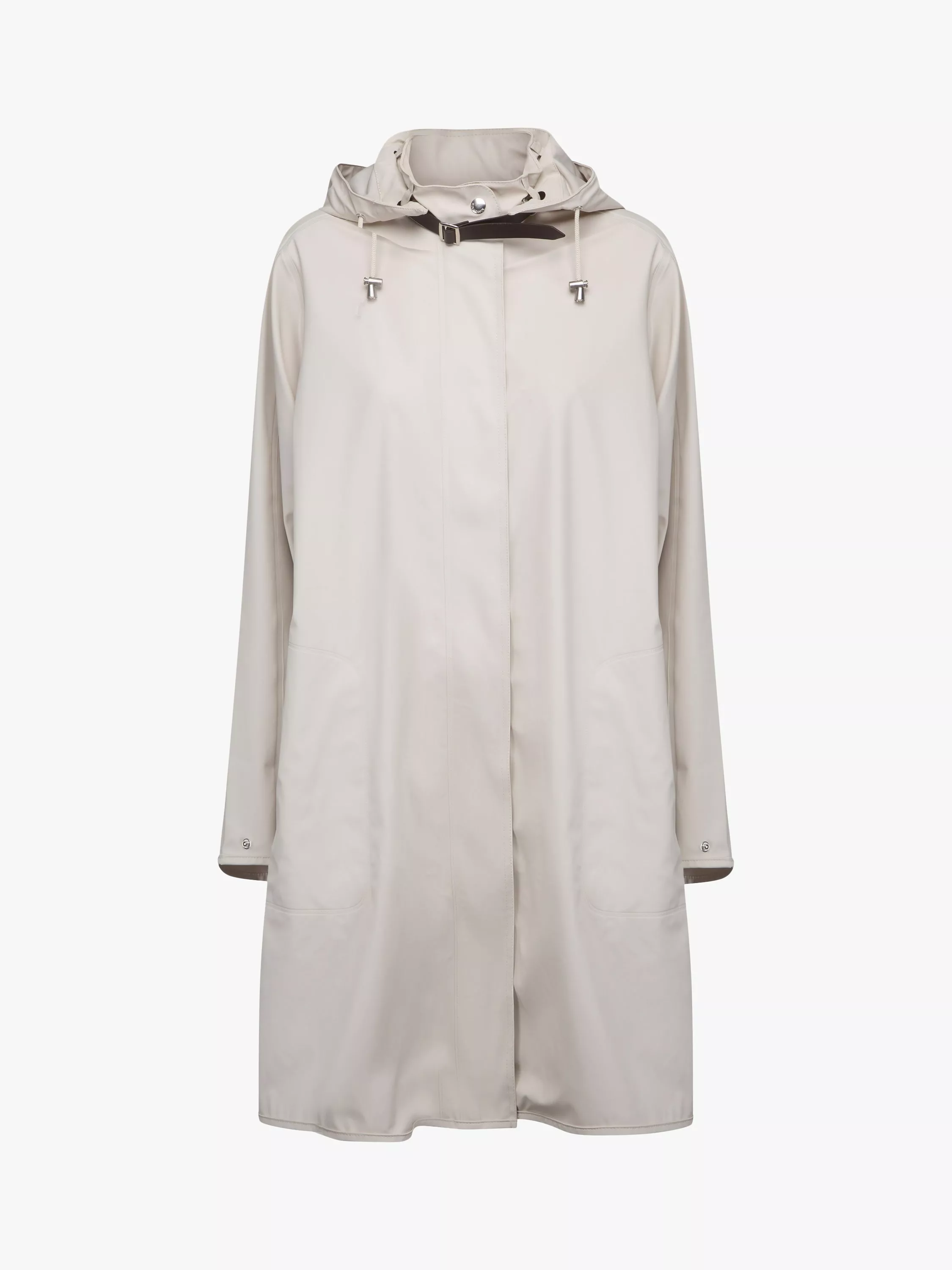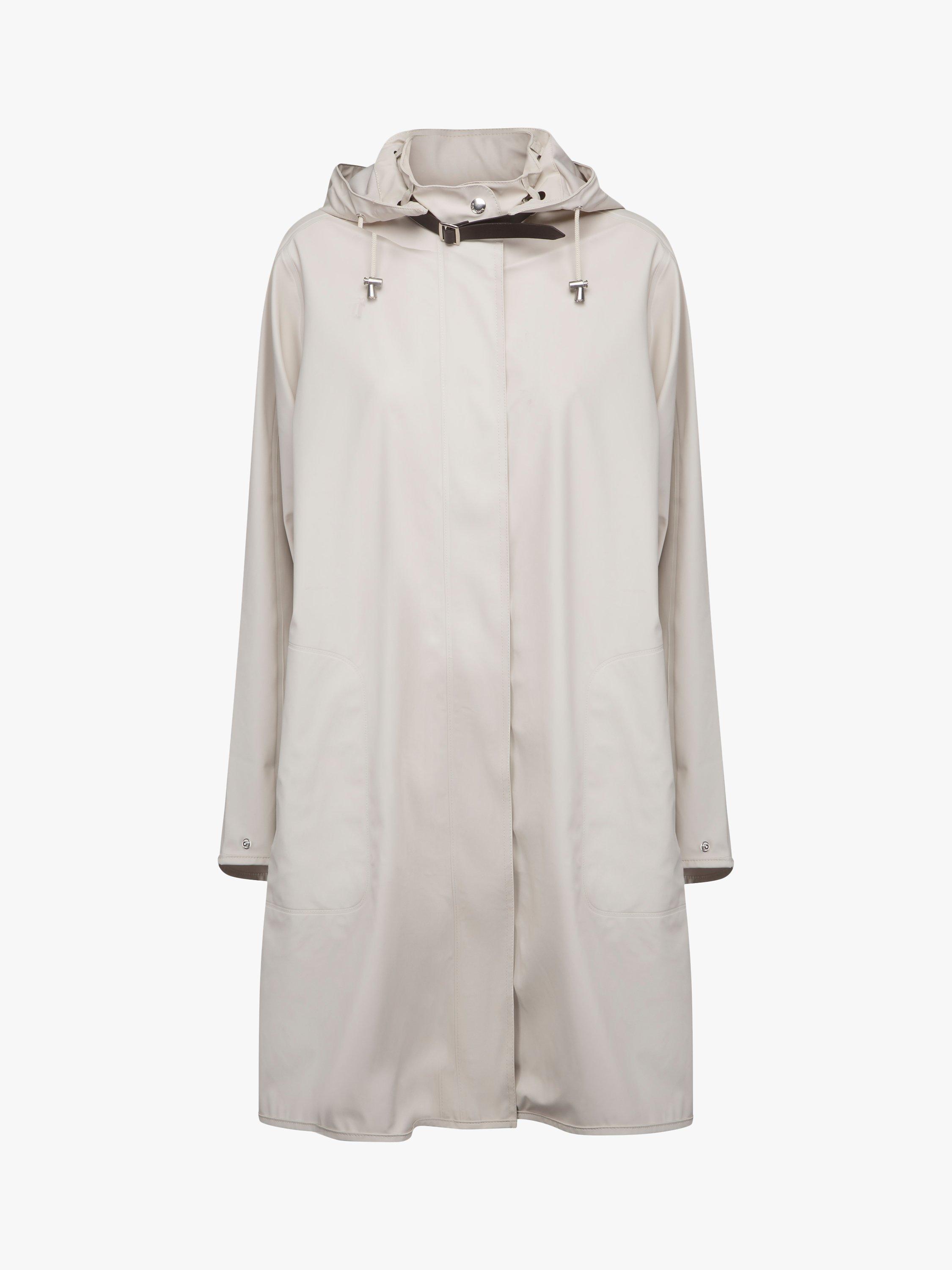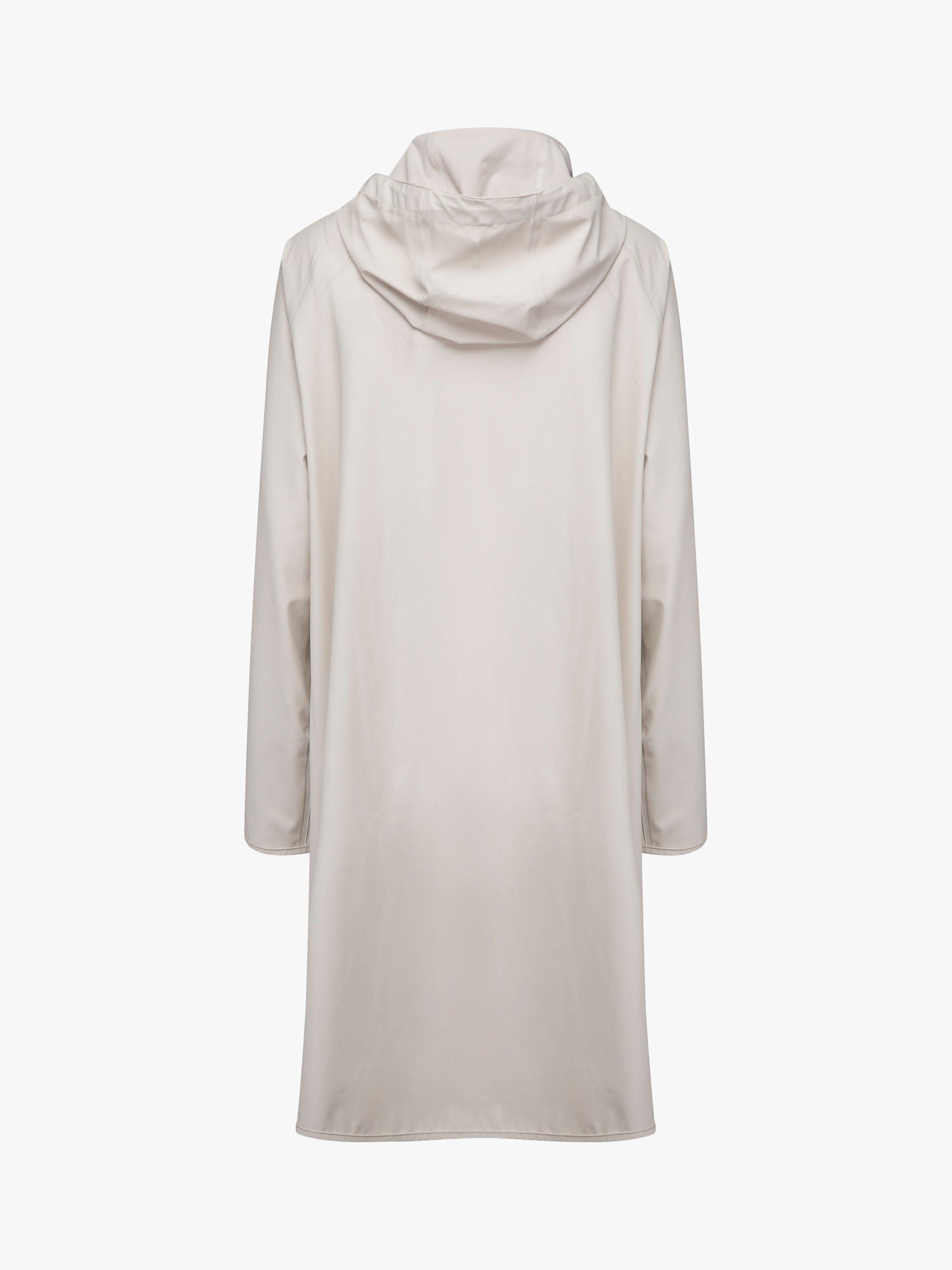This trench coat from Ilse Jacobsen Hornbæk comes in a flattering longer length and loose fit. A practical option in changeable weather with a detachable hood, it is made from a light and subtle waterproof rubberized PU fabric with polyester tricot on the back double welded seams to keep you dry. Inside the style has a clean and delicate finish with logo ribbon.