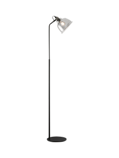 This floor lamp suits modern industrial-inspired settings. The shade is made from glass and the brushed metal detail completes its restorative look.
