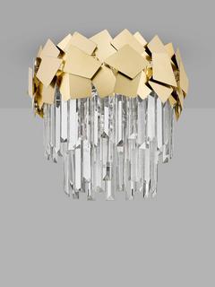 The modern-abstract form of this ceiling light makes it an eye-catching choice for your home. It's made from glass crystals arranged in a two-tiered formation and surrounded by artistically arranged metal plates. As a semi-flush fitting, this ceiling light is well-suited in rooms which have a low ceiling and it offers a bright illumination.