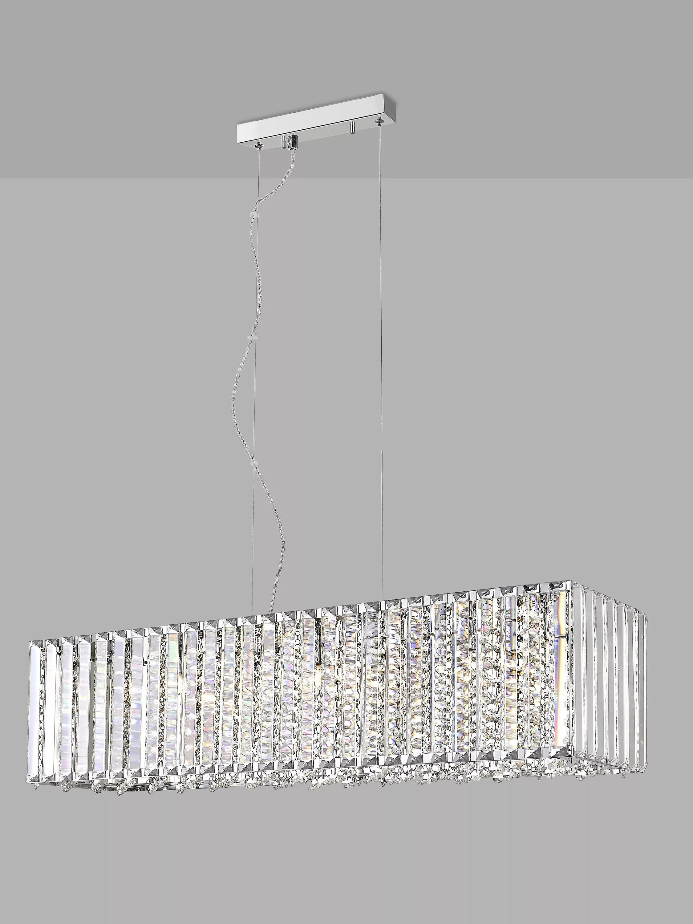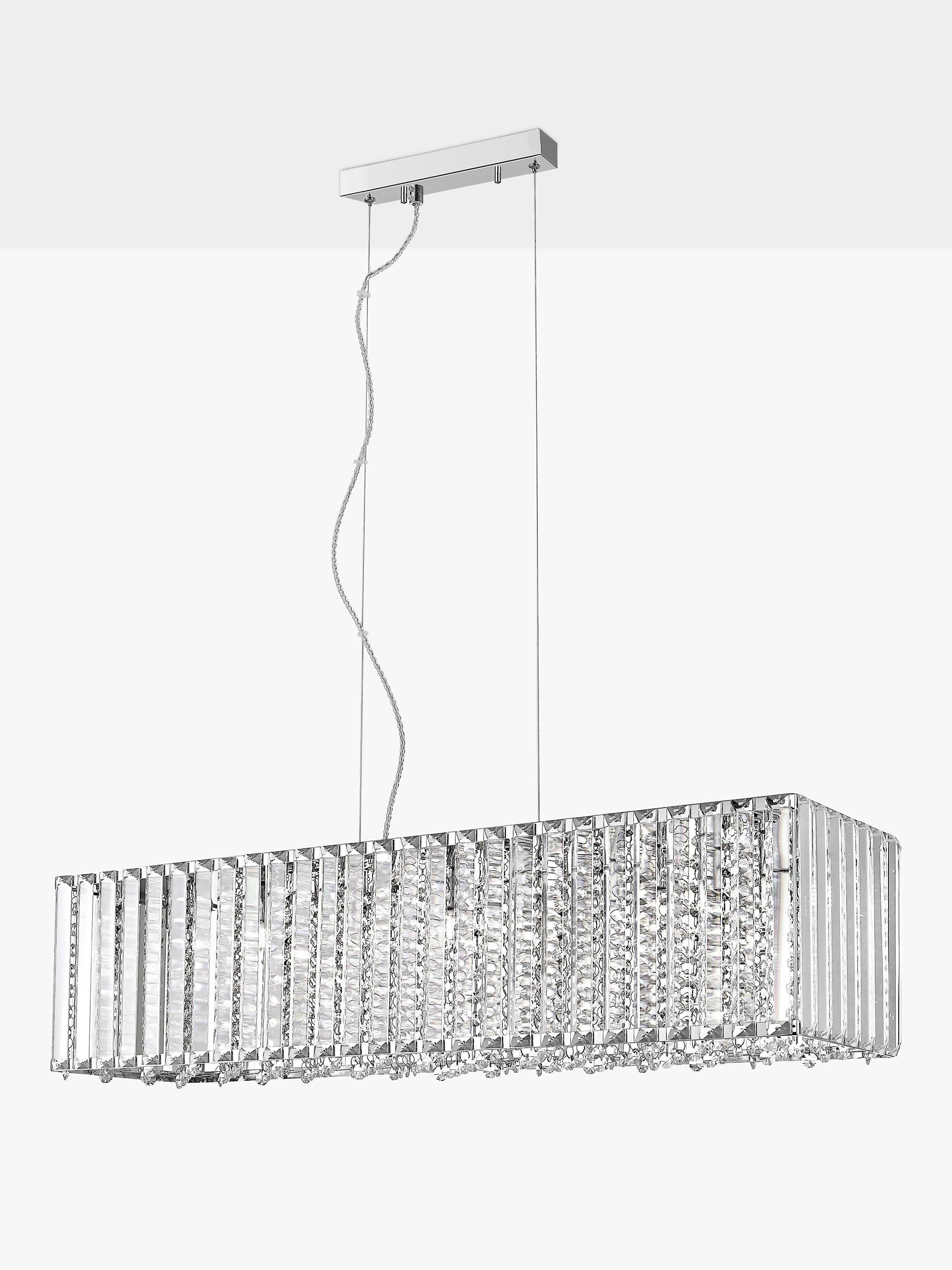 Made from a dazzling combination of glass crystal bars and beads, this ceiling light will add instant glamour to your space. Its robust bar shape means it's well-suited directly above a dining table or kitchen island and it's height-adjustable at the point of installation. When illuminated, light will radiate around your space and the crystals will dazzle, so it becomes a real feature in your room. Seven LED bulbs are required.