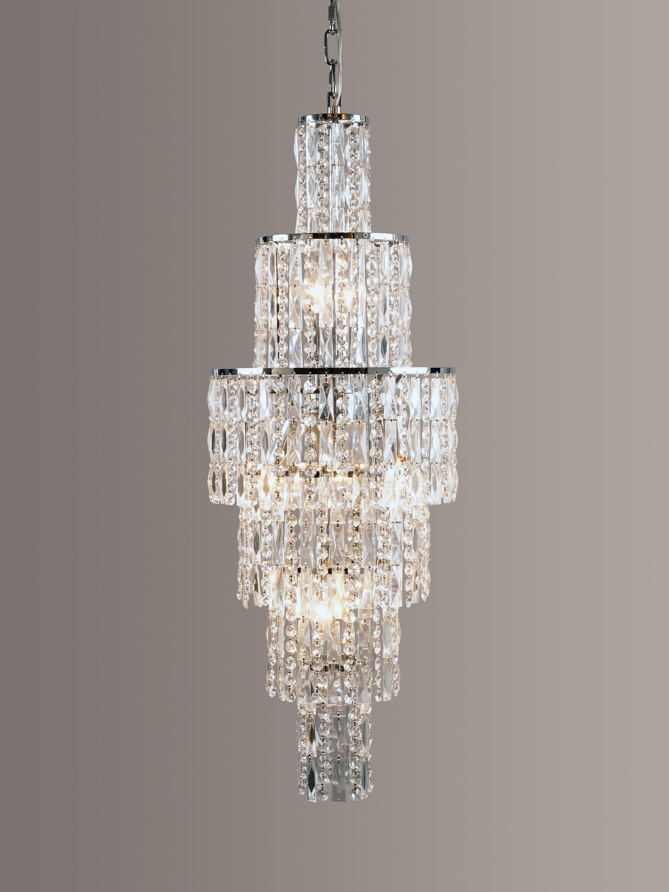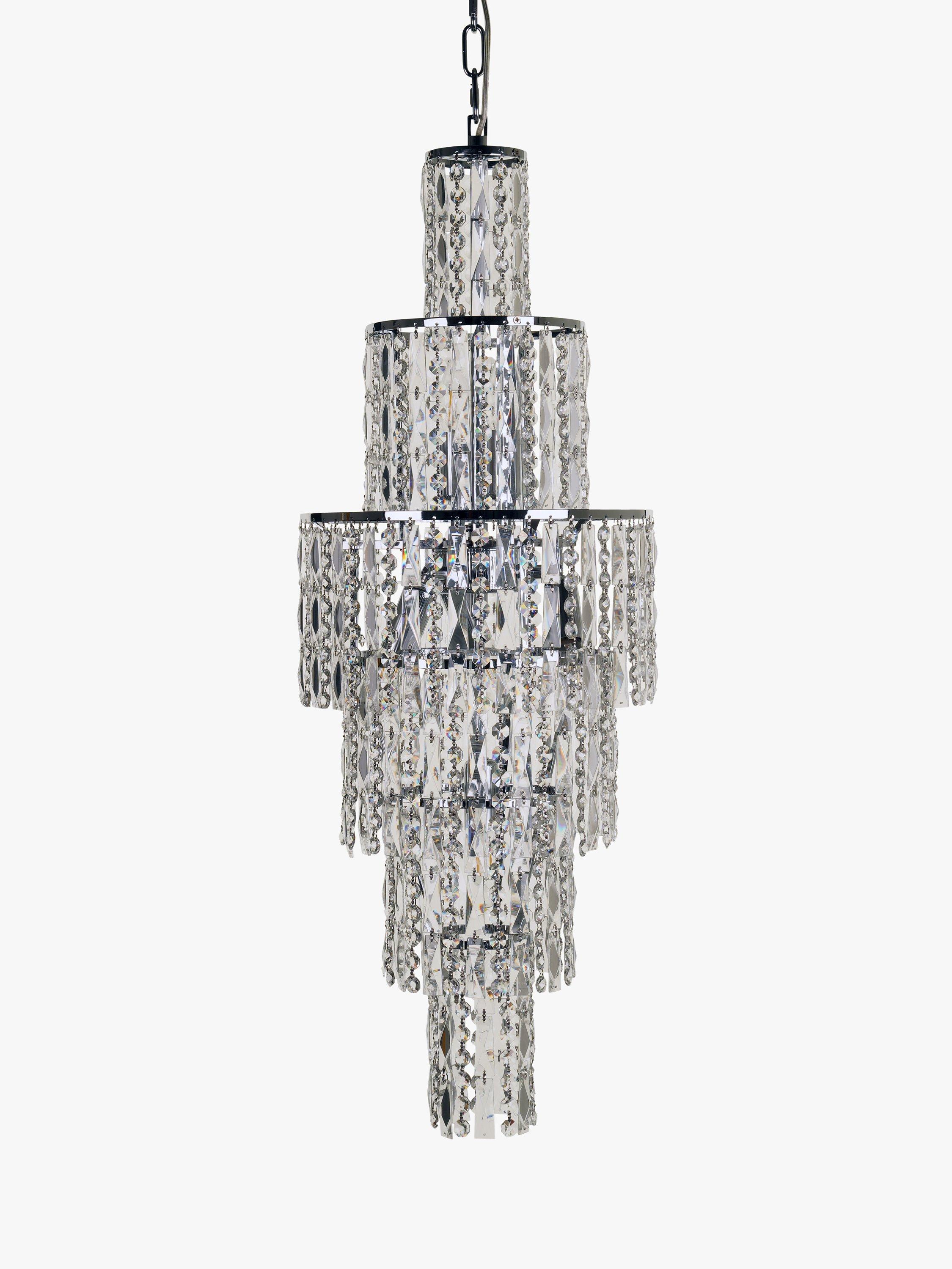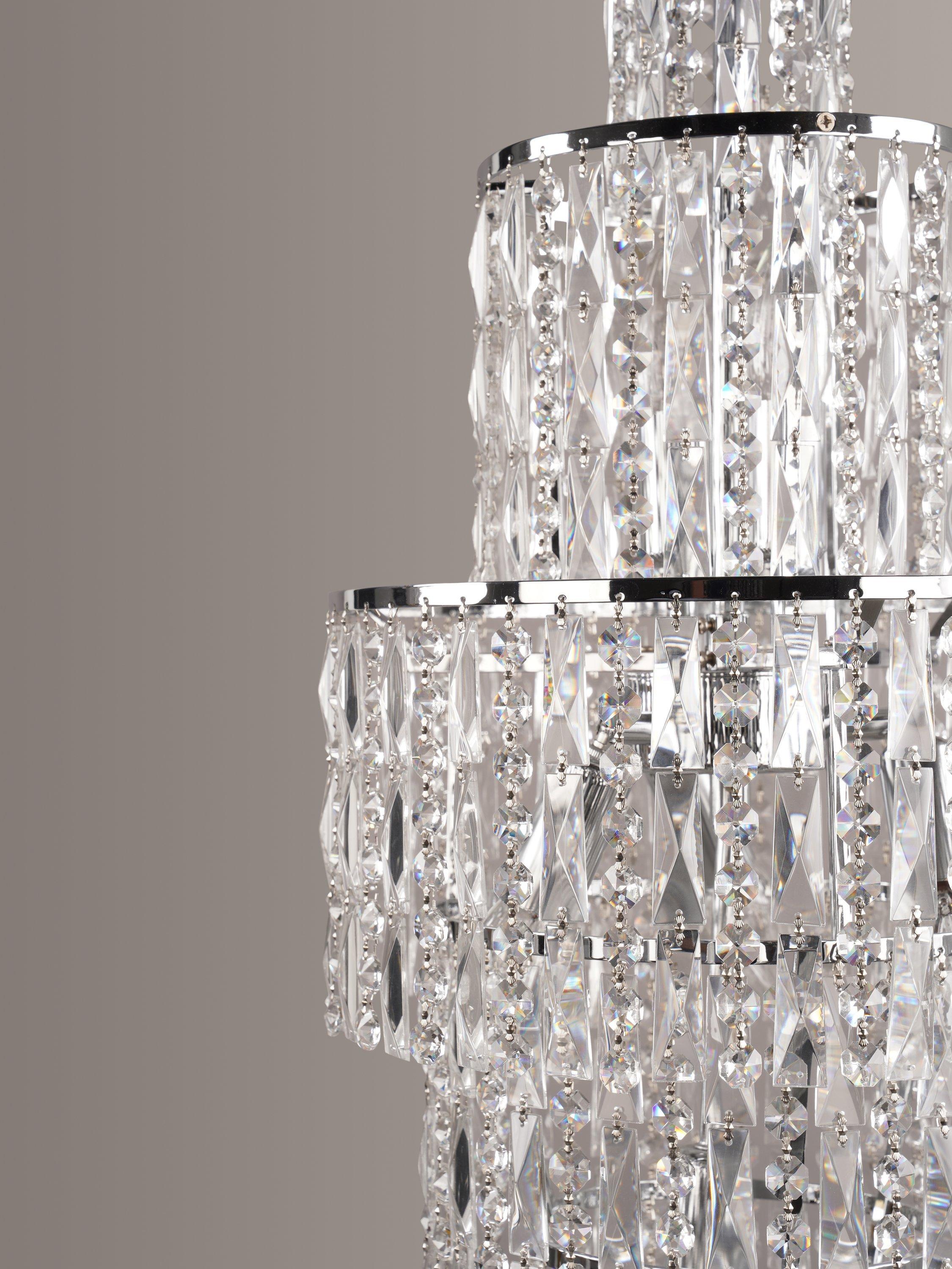 Drawing inspiration from Art Deco design from 1920s New York, this cascading crystal chandelier makes an impact. Faceted crystals and alternating beads dazzle over six tiers, refracting light and illuminating a room with style.