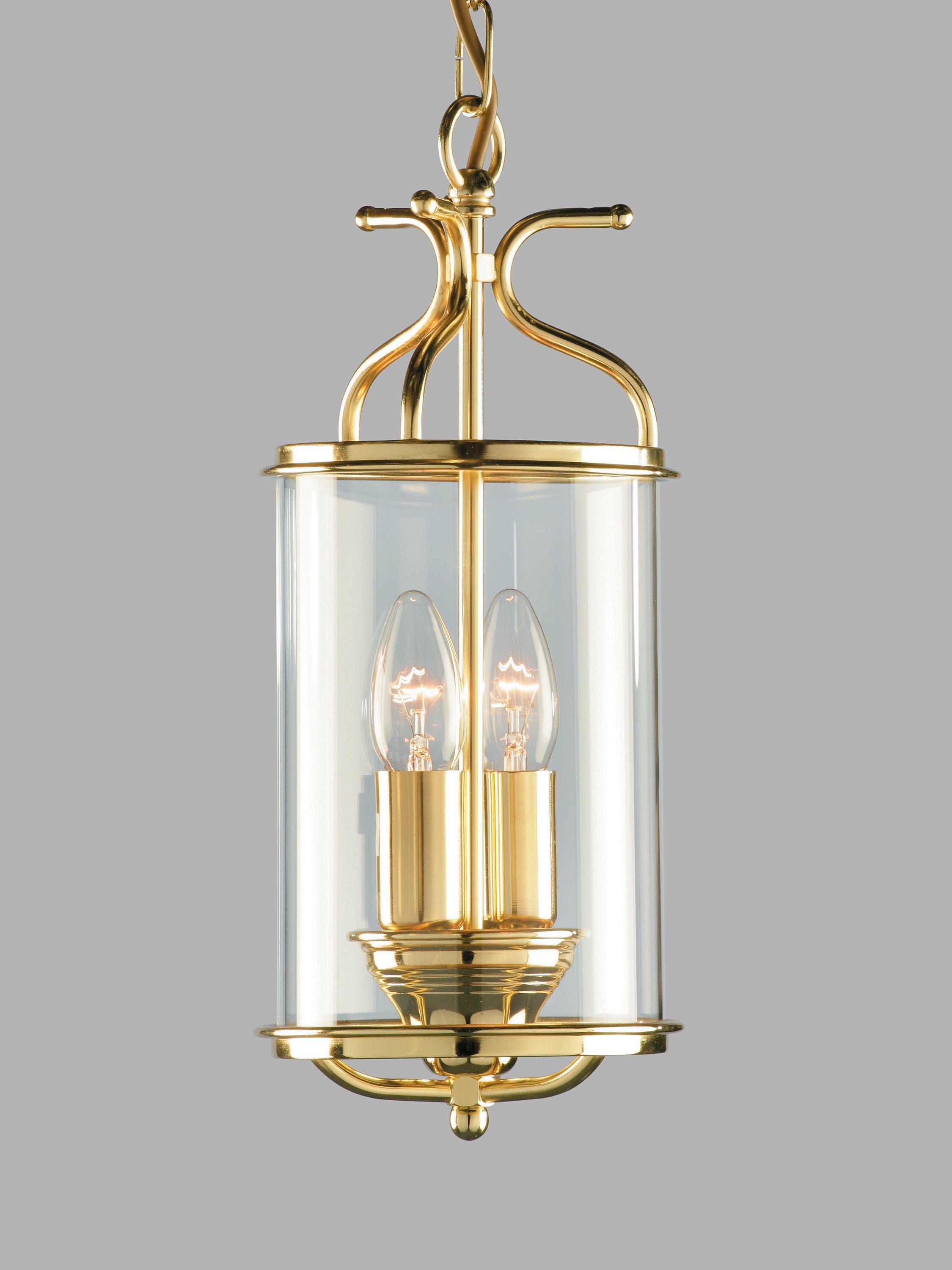 Available in a choice of metal finishes, this lantern-style pendant accommodates two LED bulbs. A traditional and elegant design, it's suspended from a height-adjustable chain and offers a warm glow of light.